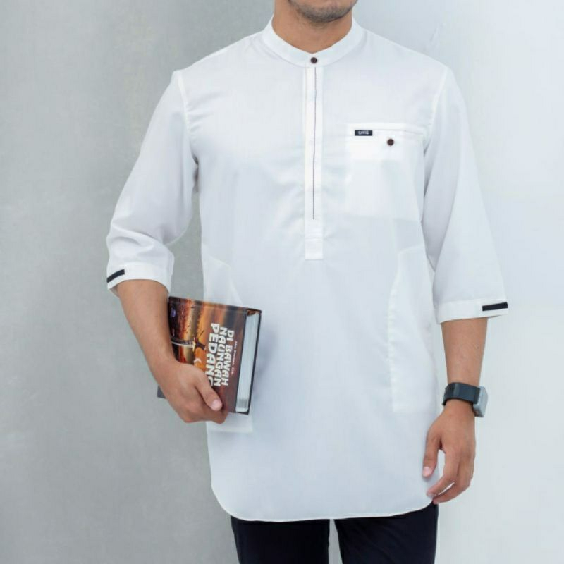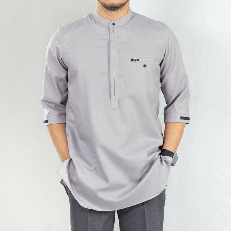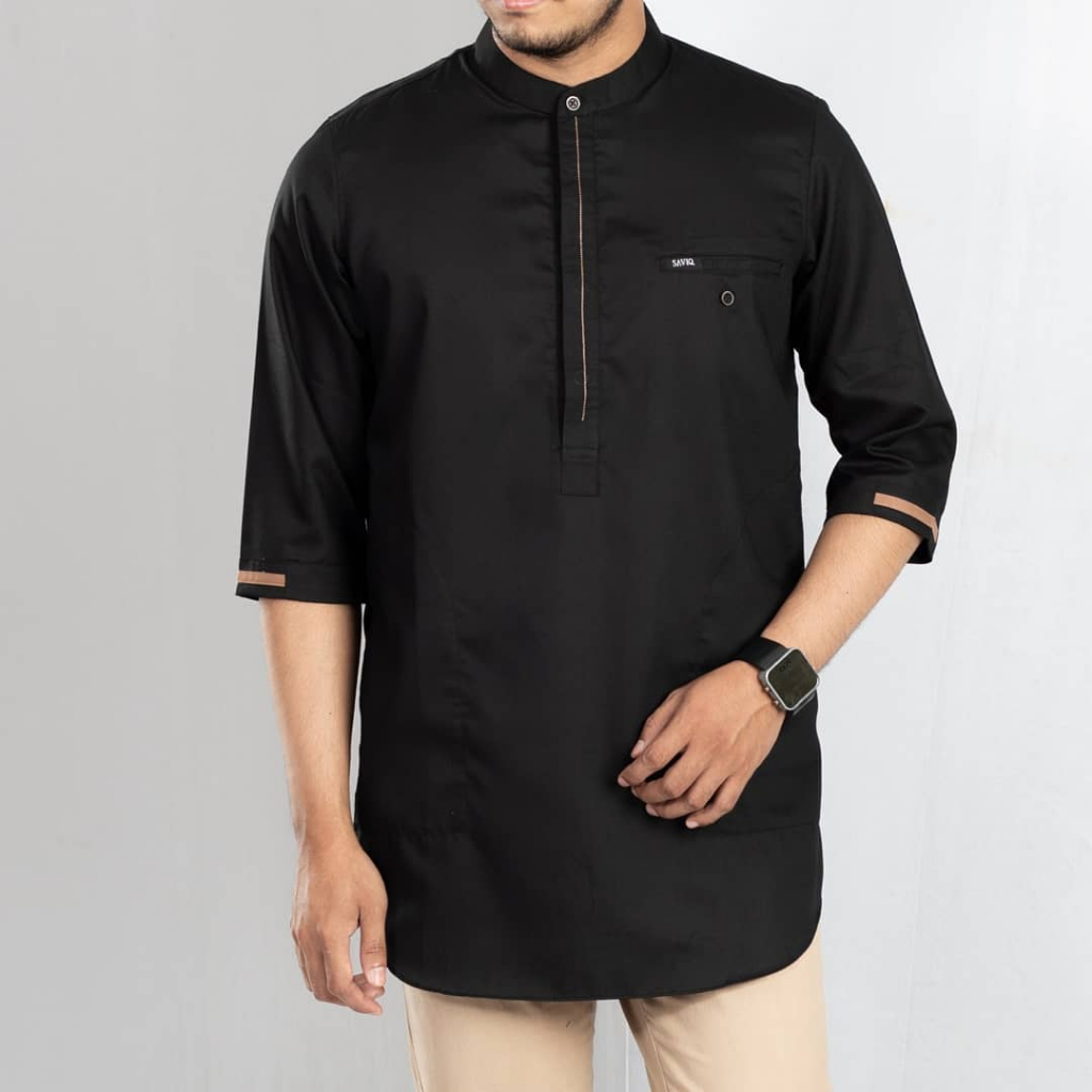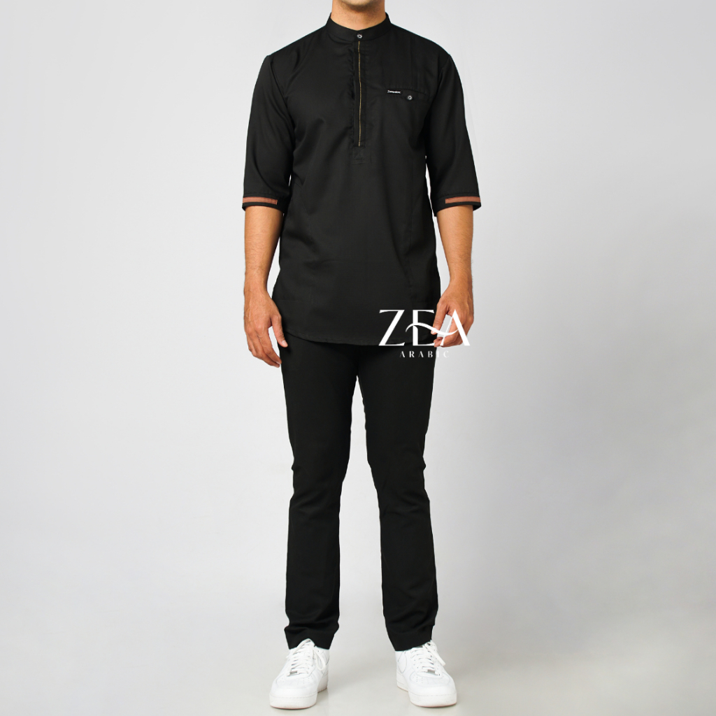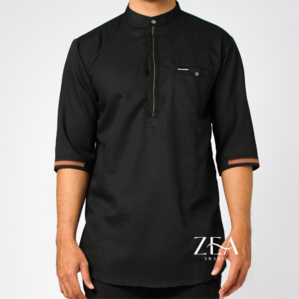(Gratis Ongkir) Zeaarabic Kemeja Koko Pria Basic Polos Hitam 3/4