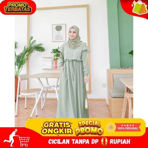 GRATIS ONGKIR Hasna Dres Terbaru Bahan Crinkle Import Mix Brokat Malika Kekinian