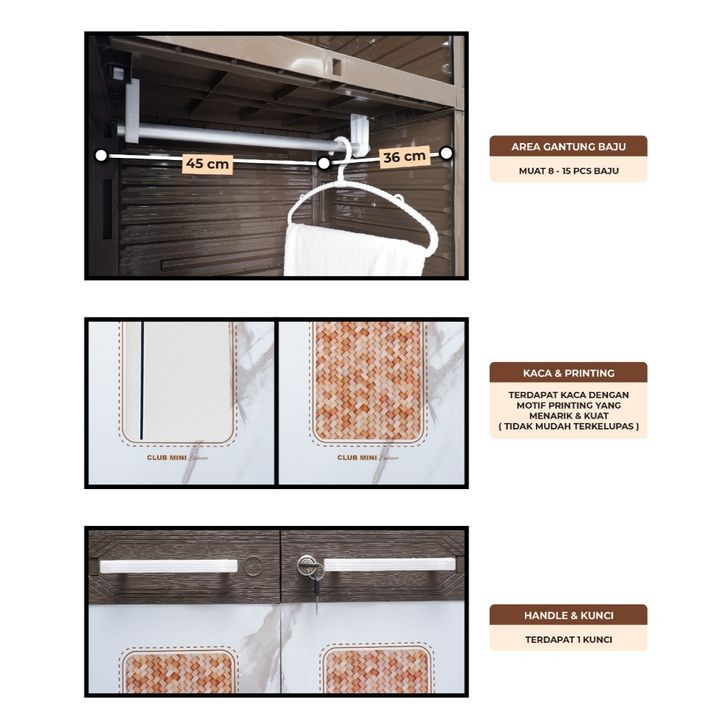 LEMARI JUMBO BESAR / Lemari Plastik / Lemari Baju CLUB / LEMARI FULL RAK KUNCI CERMIN KACA 4 PINTU / DISKON 30%