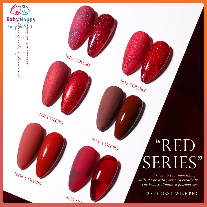 15ML 12 WARNA JELLY COLOR GEL POLISH MERAH NAIL POLISH SET FOR HADIAH NATAL WITH SWATCHES