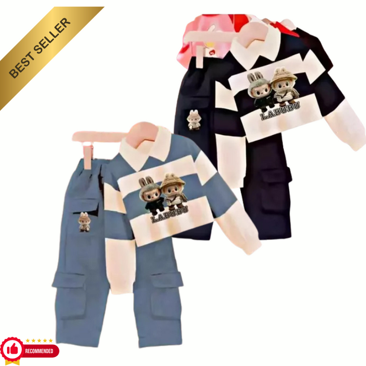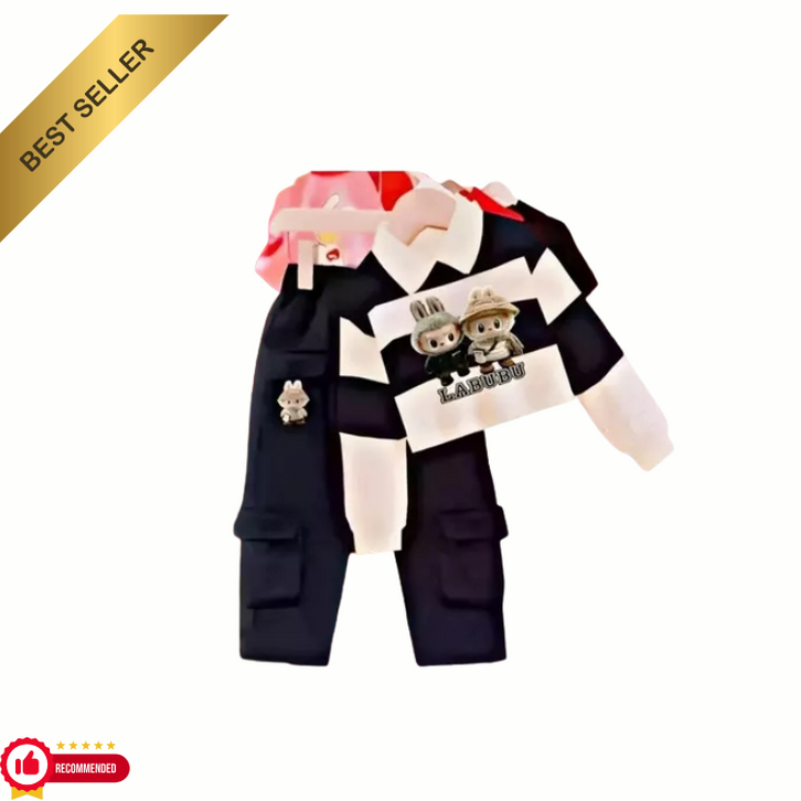 SETELAN BAJU ANAK PEREMPUAN VIRAL MOTIF LABUBU USIA 1-12 TAHUN TERBARU DAN TERLARIS