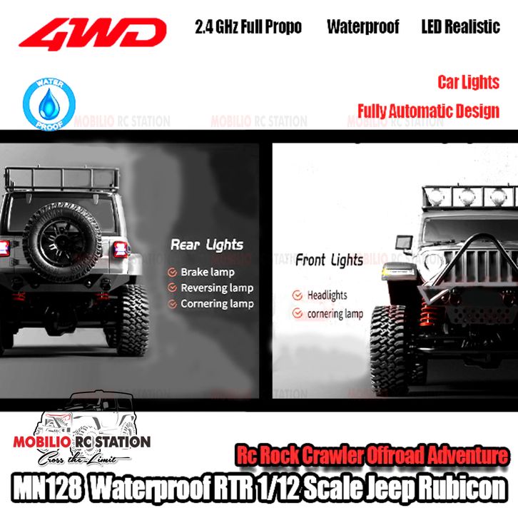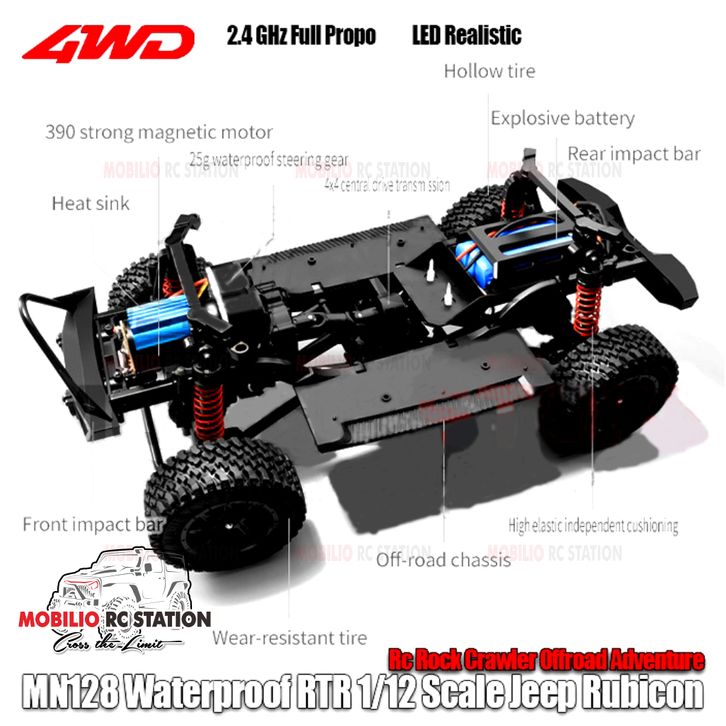 [Star] Mobil RC Offroad / MN128 Waterproof RTR 1/12 Scale Jeep Rubicon RC Rock Crawler Adventure