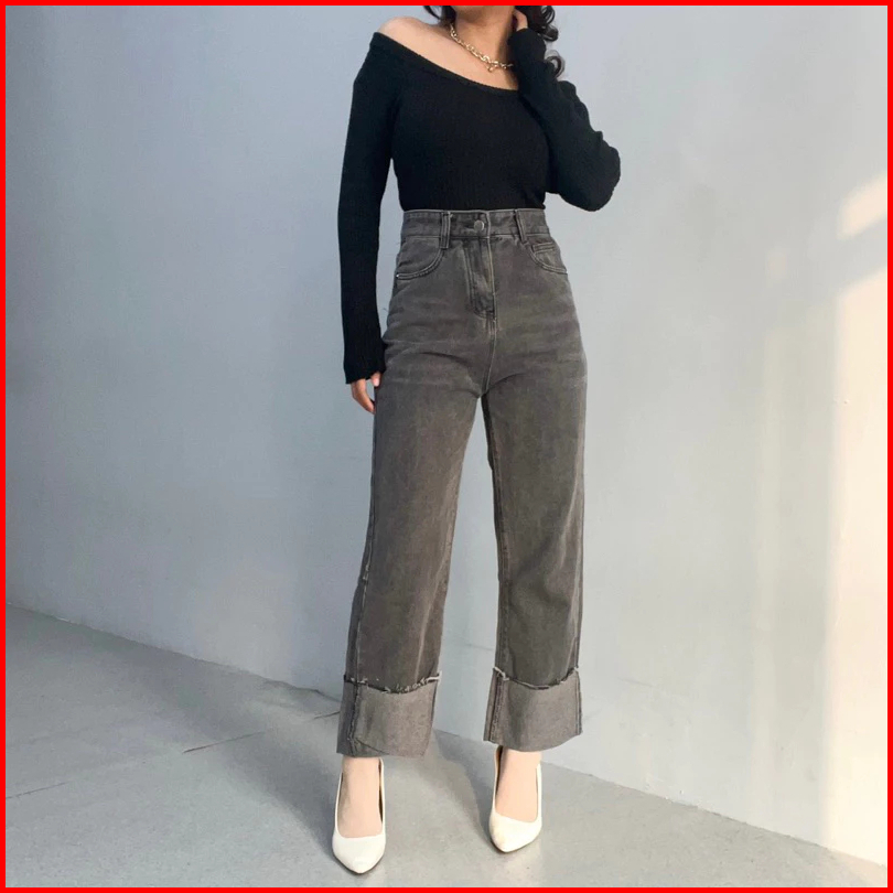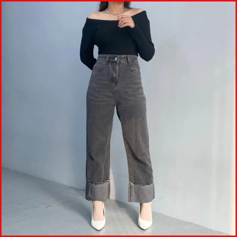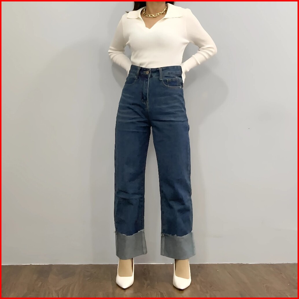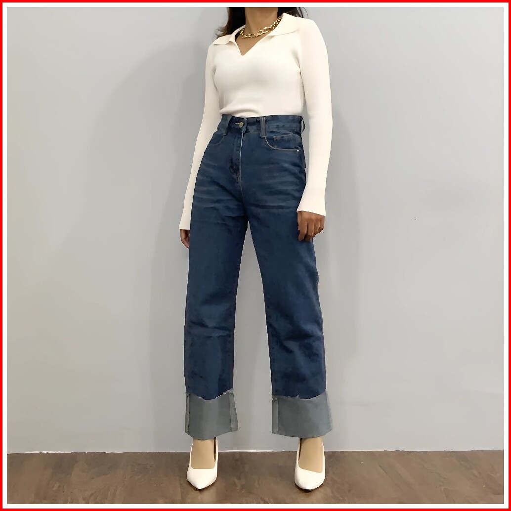 Addin - E21 Jeans Jeans Lipat Bawah Model Terbaru Korea Premium Highwaist
