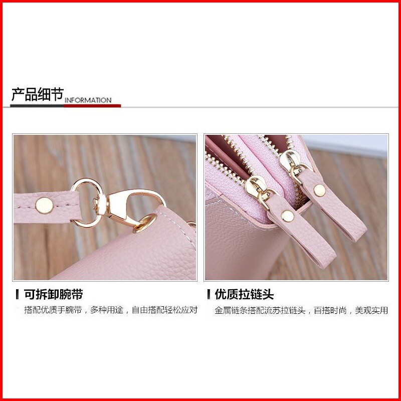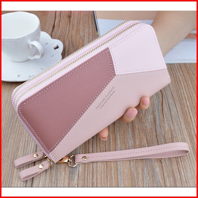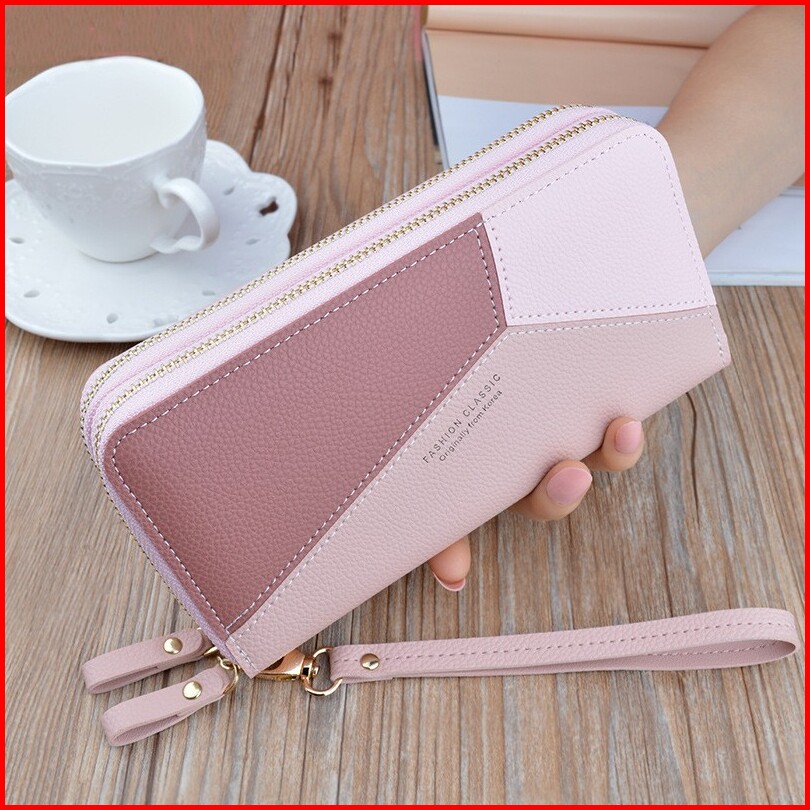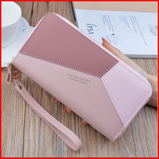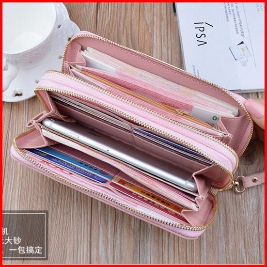 Dompet Wanita 2 Resleting Premium Pink Kulit Besar Panjang Korea Tali Fashion Coryta Wa121p3