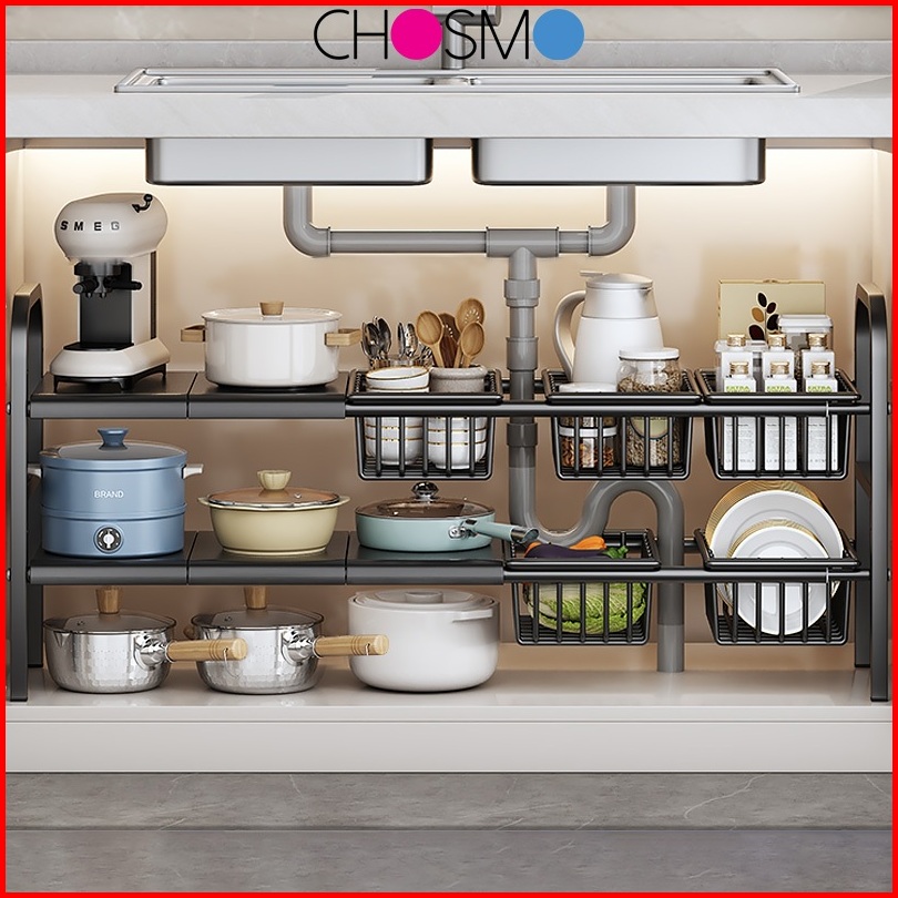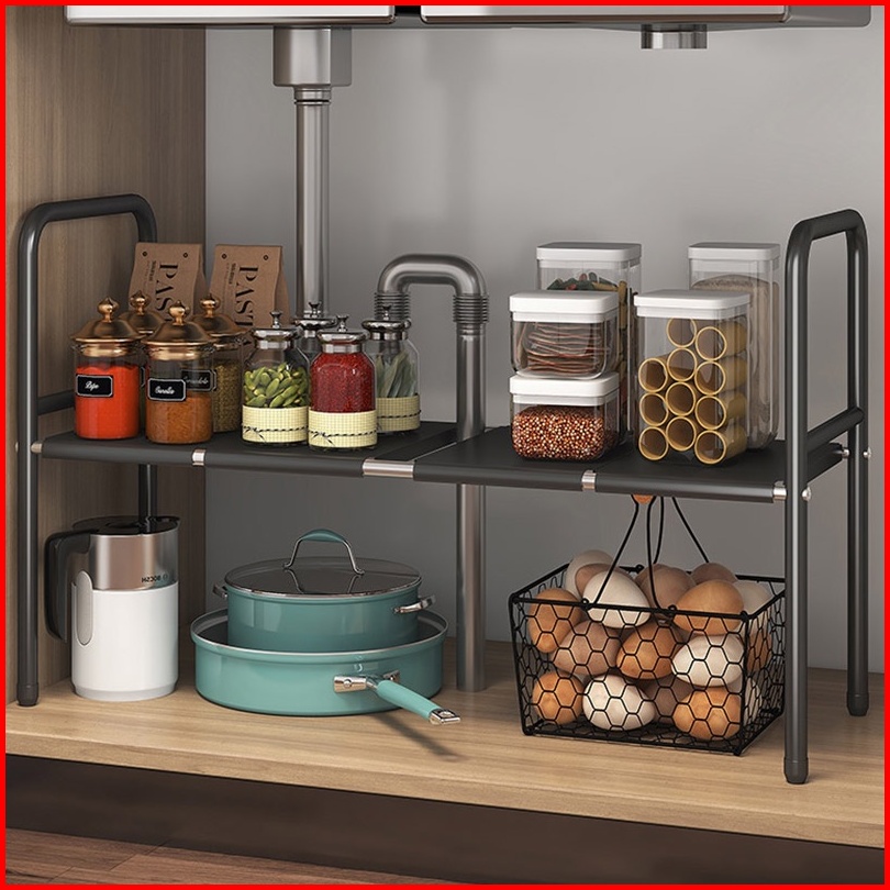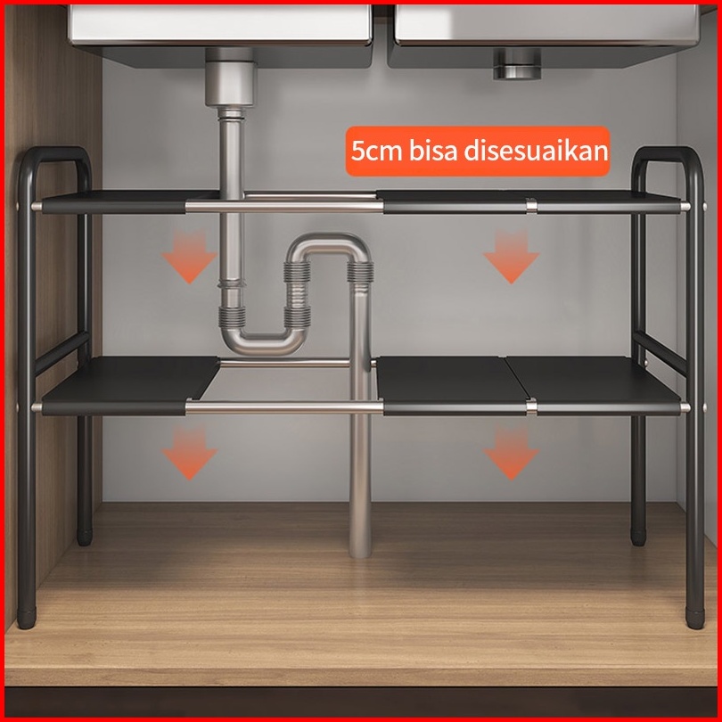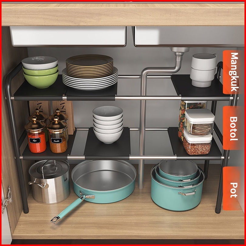 Rak Penyimpanan Dapur Rak Penyimpanan Dapur Rak Serbaguna Dapur Bawah Sinki Stainless Steel Yang Dapat Diperluas