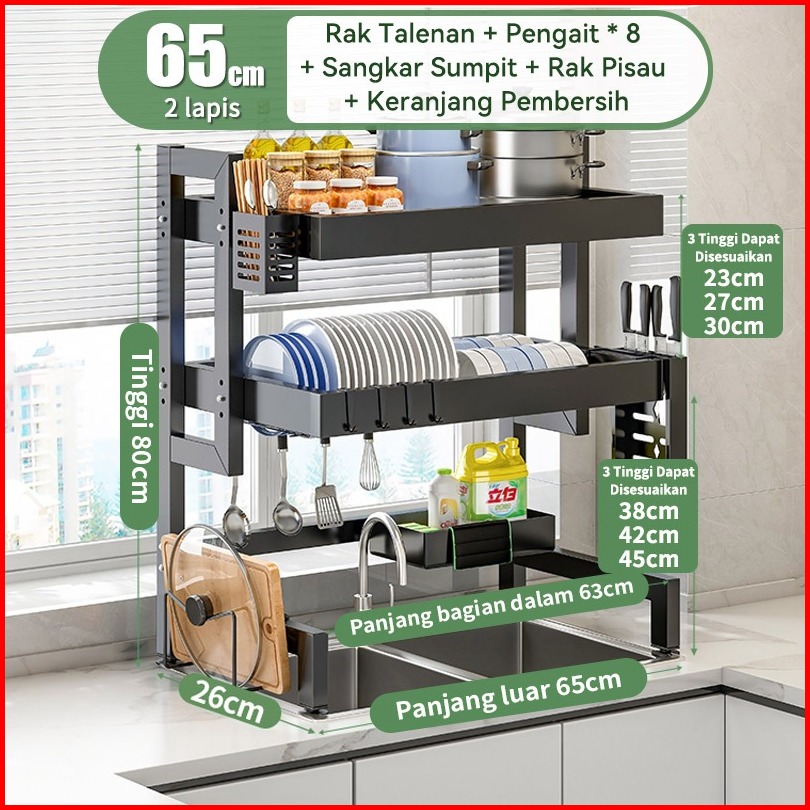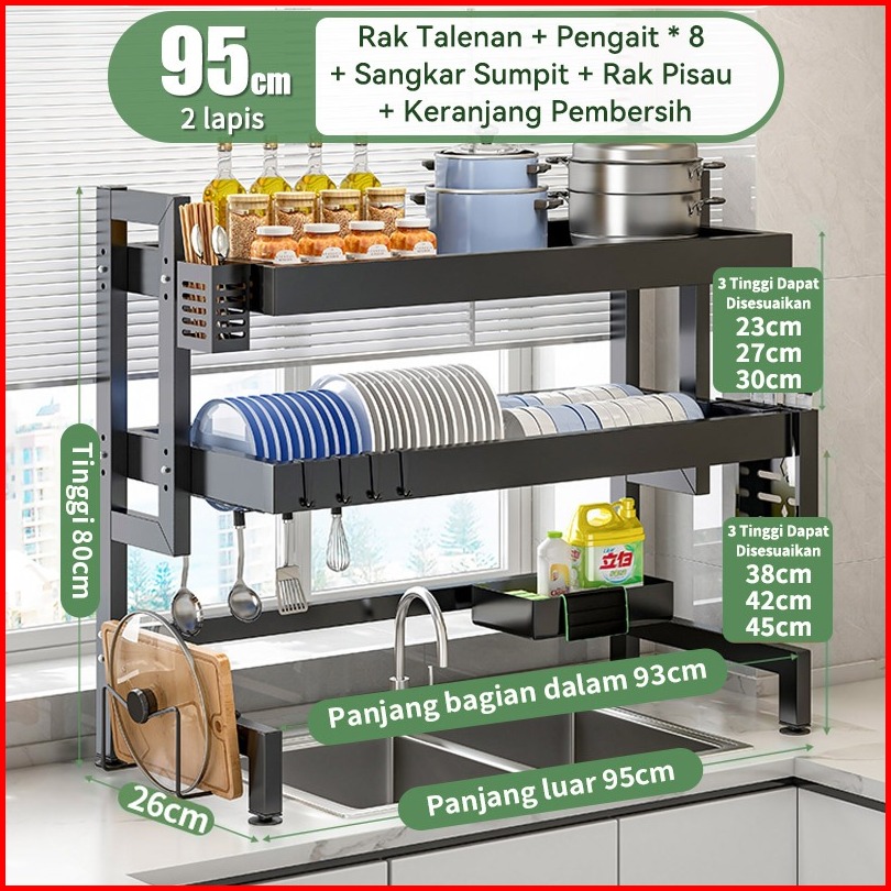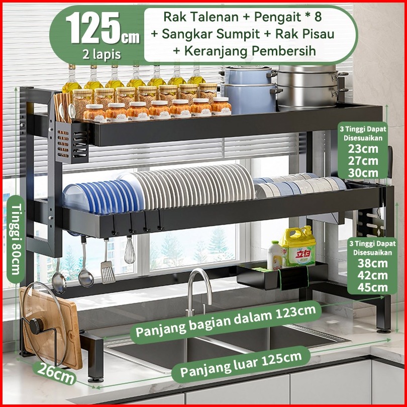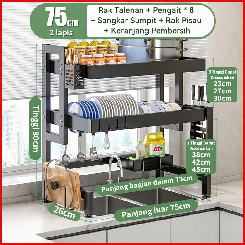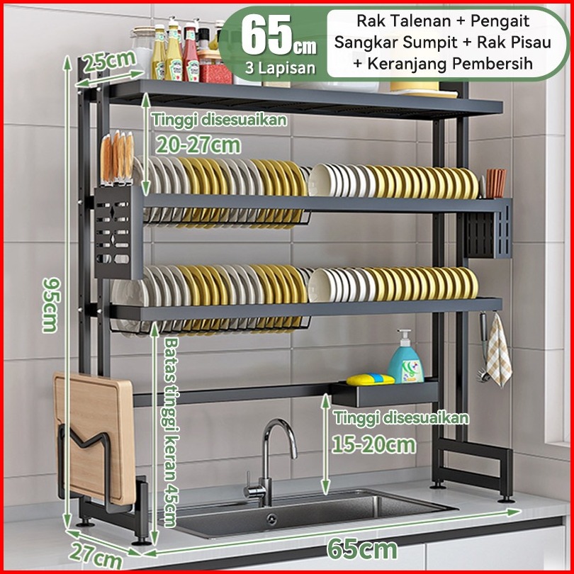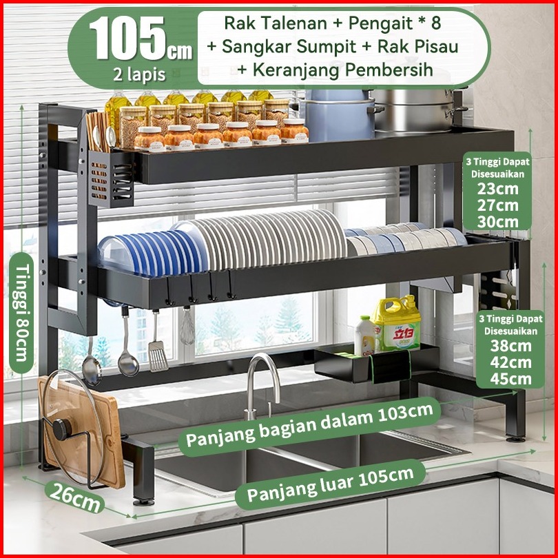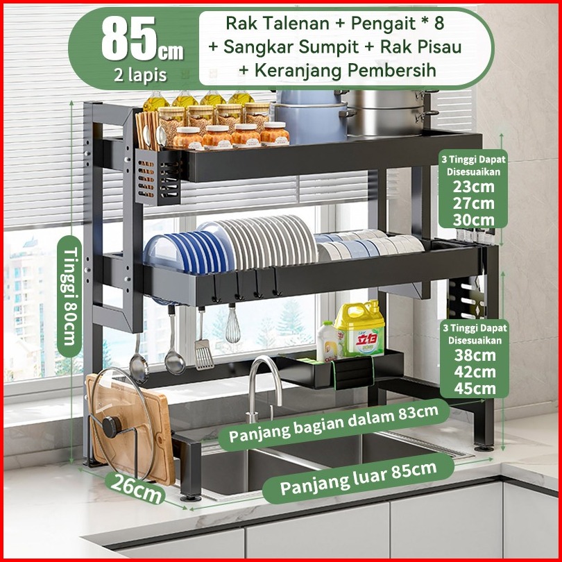 Rak Wastafel Dapur Rak Piring Multifungsi Rak Dapur Rak Stainless Steel Peralatan Dapur Kokoh