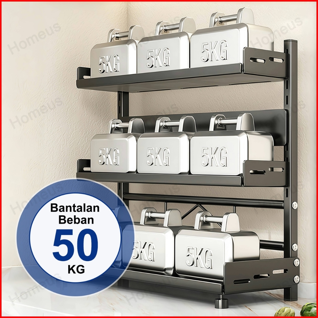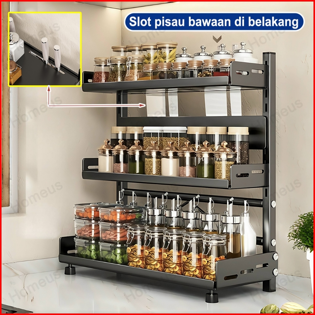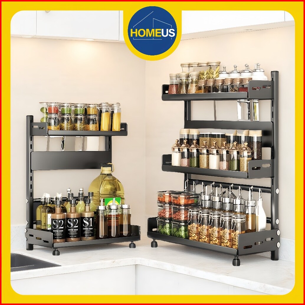 Homeus Rak Bumbu Dapur Stainless Steel Rak Bumbu Rak Dapur Serbaguna Rak Botol Bumbu 2 3 Tingkat