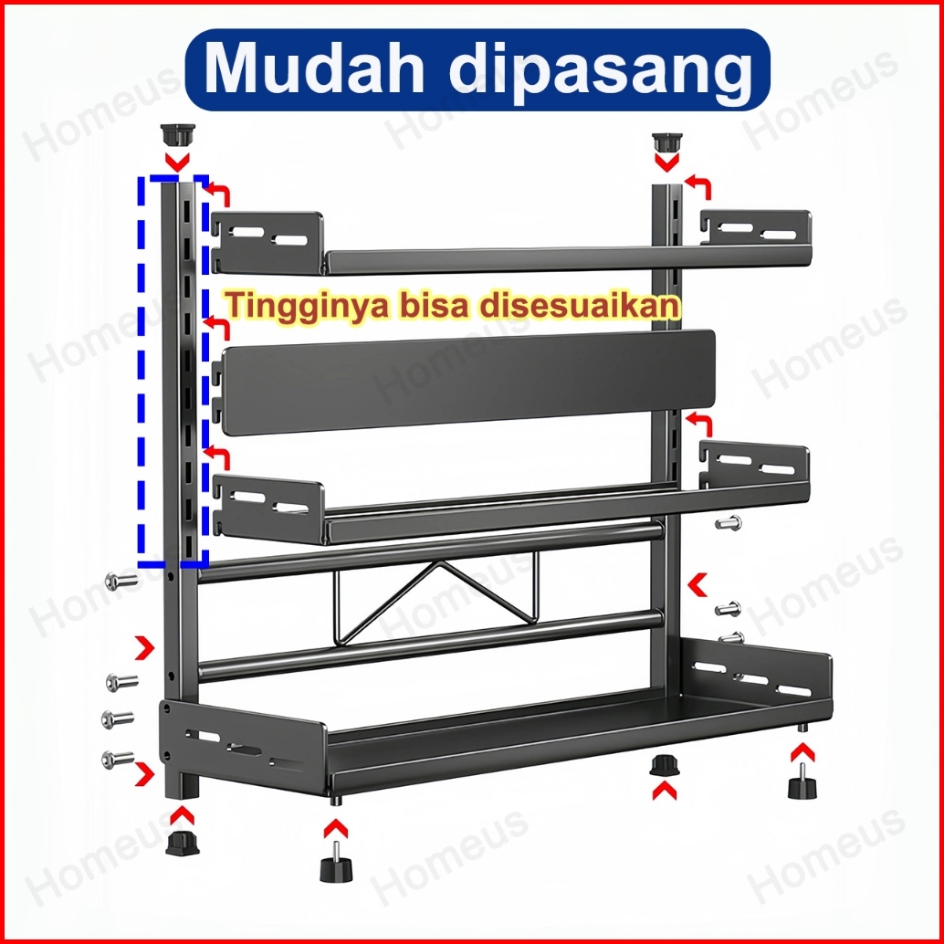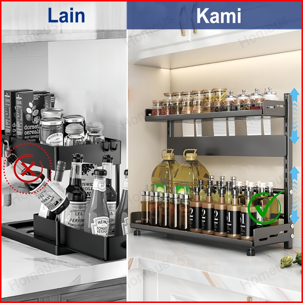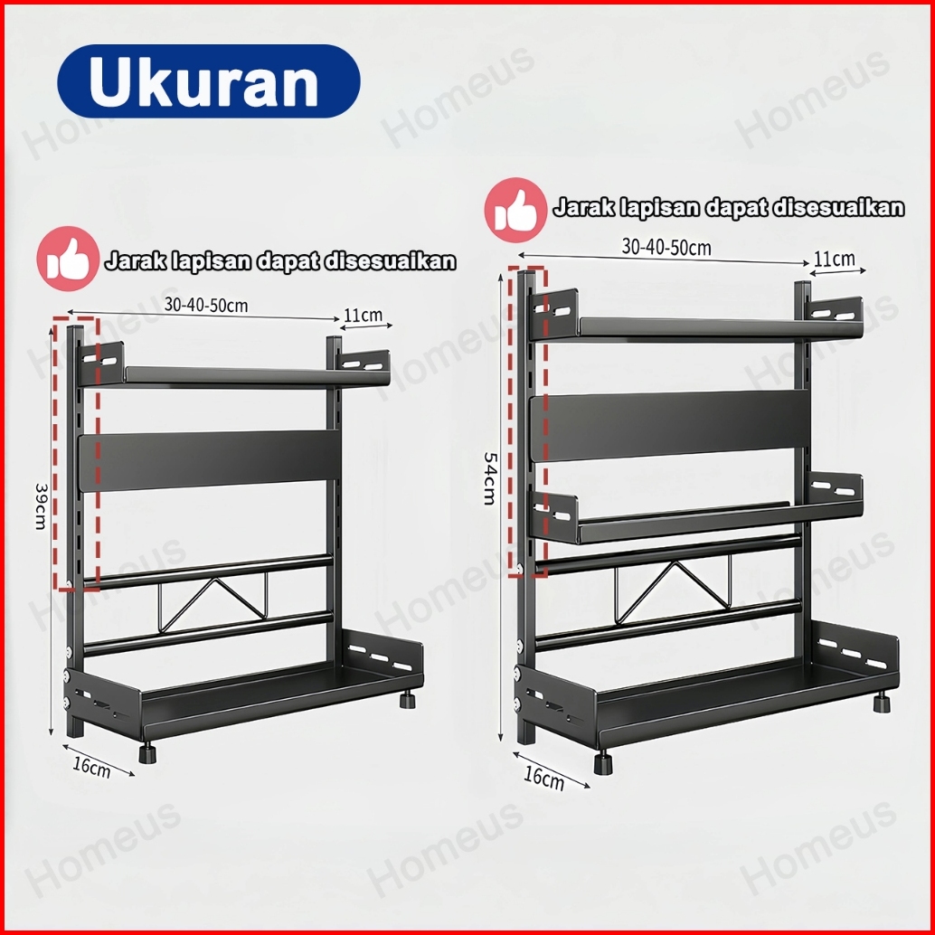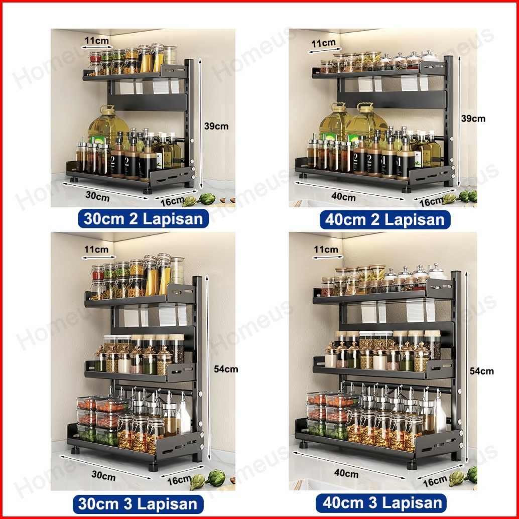 Homeus Rak Bumbu Dapur Stainless Steel Rak Bumbu Rak Dapur Serbaguna Rak Botol Bumbu 2 3 Tingkat