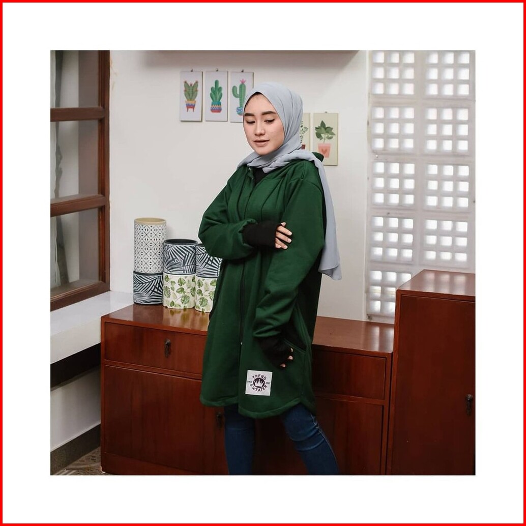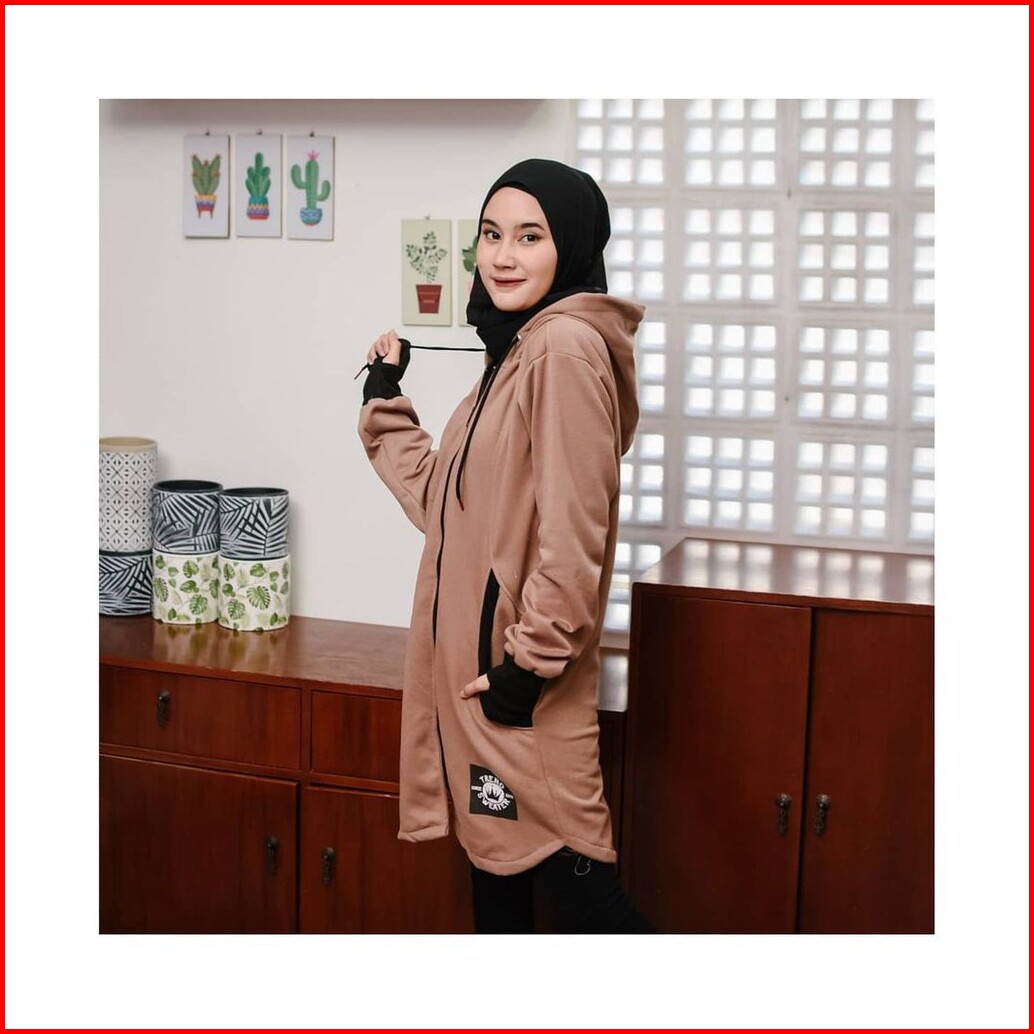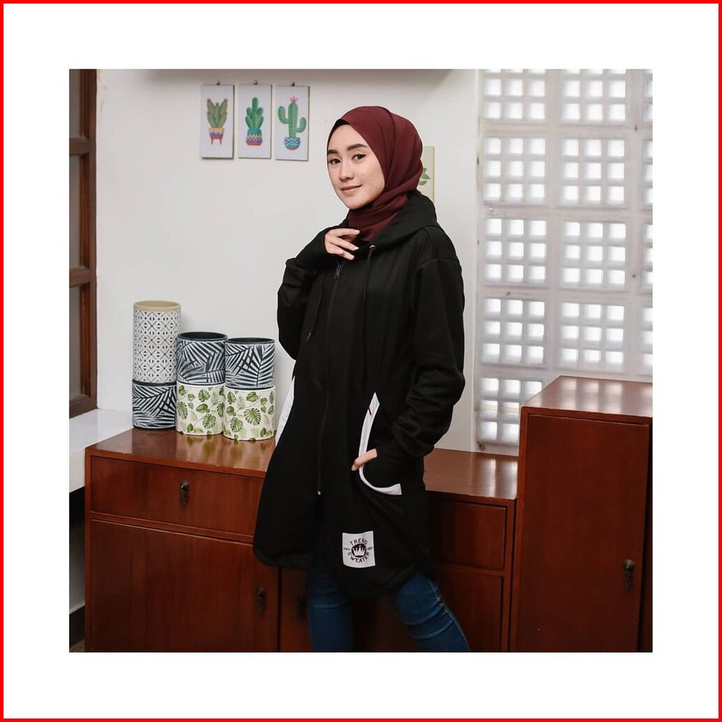 Long Rh Zipper Sweater Hoodie Zipper Hijaber Sweater Wanita Muslimah Masa Kini
