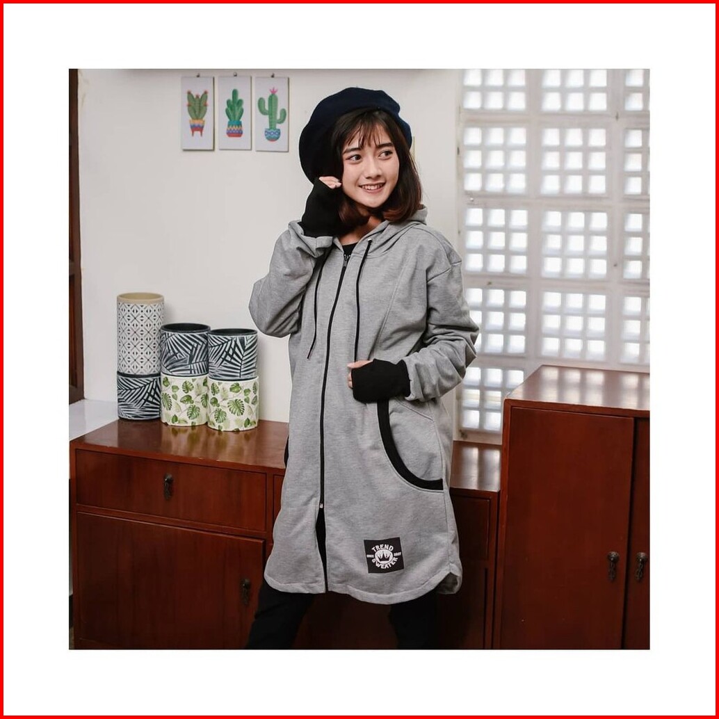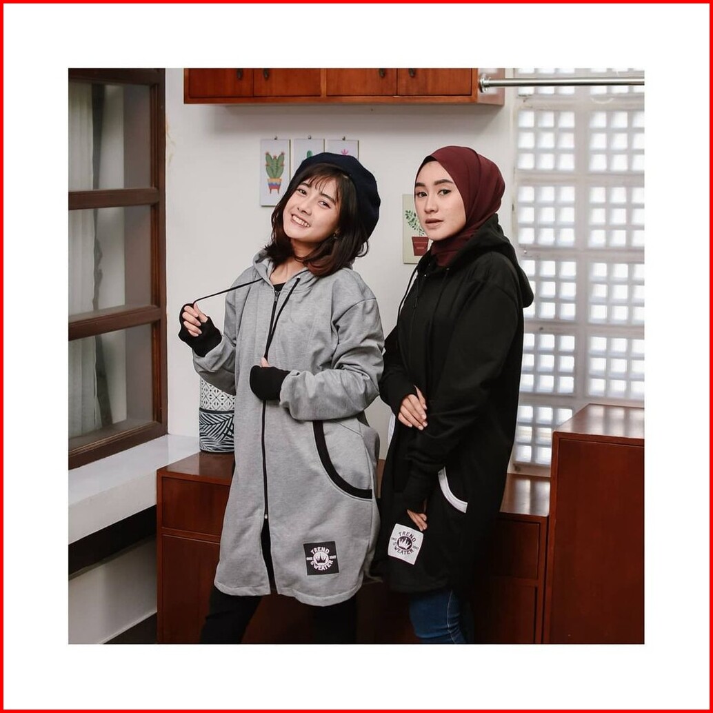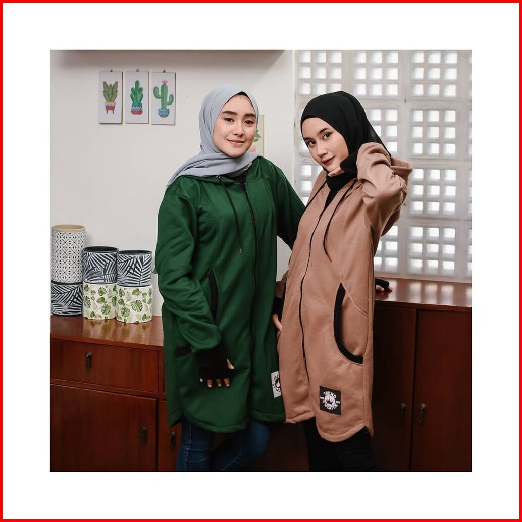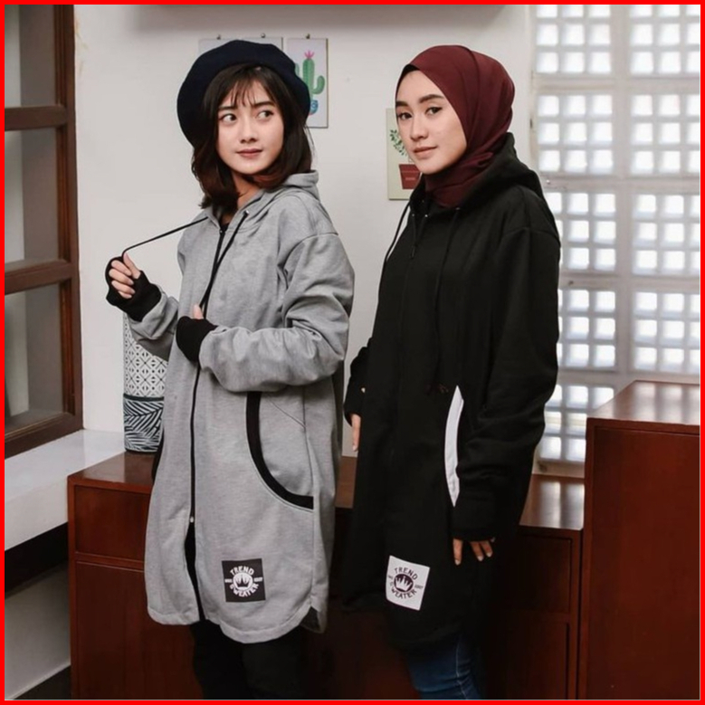 Long Rh Zipper Sweater Hoodie Zipper Hijaber Sweater Wanita Muslimah Masa Kini