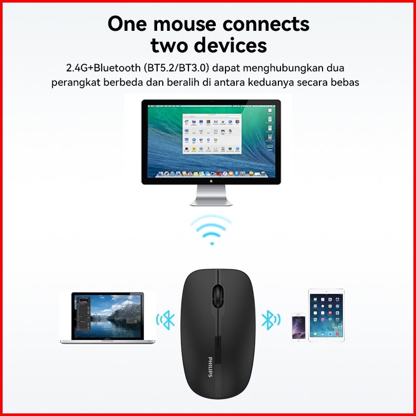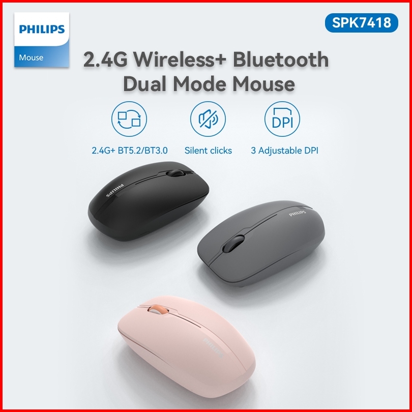 Philips Mouse Dual Mode Wireless Bluetooth Silent Clicks 1600 Dpi Spk7418 Original - Garansi Resmi 1 Tahun 1