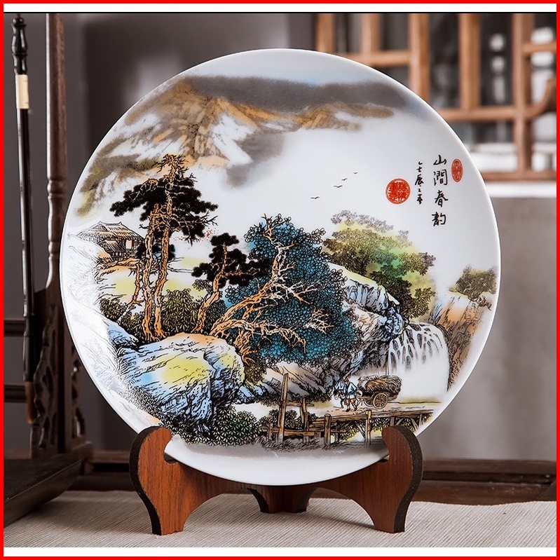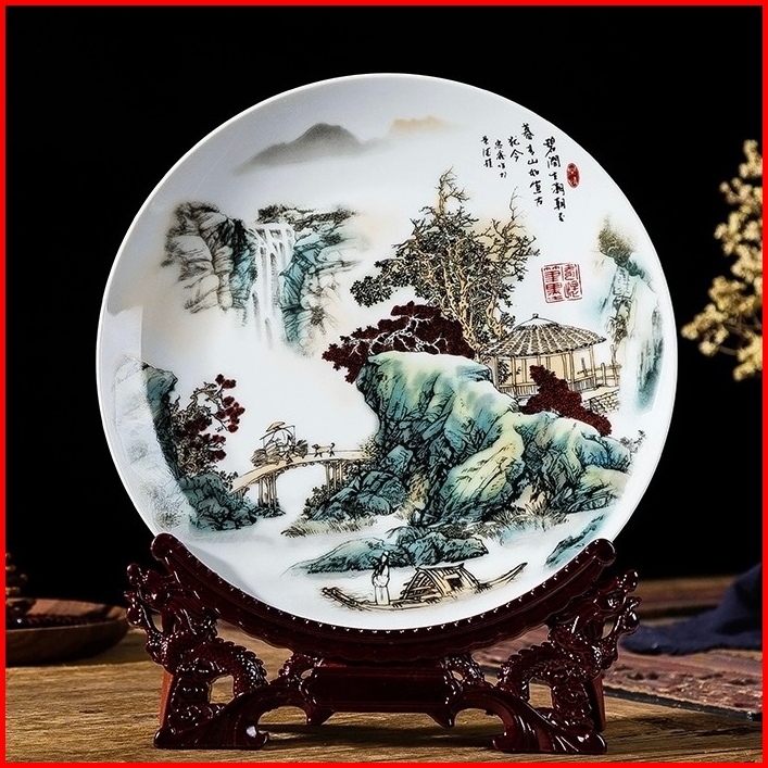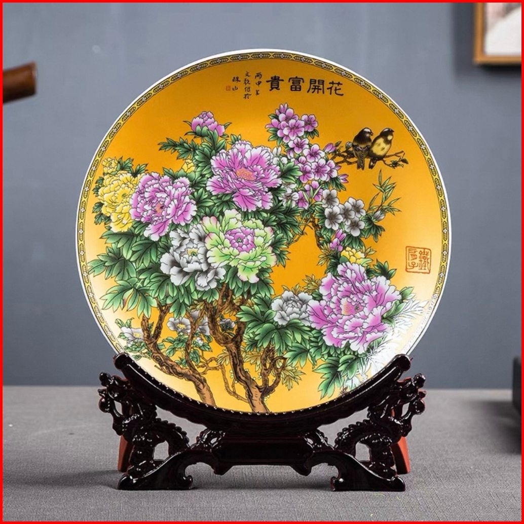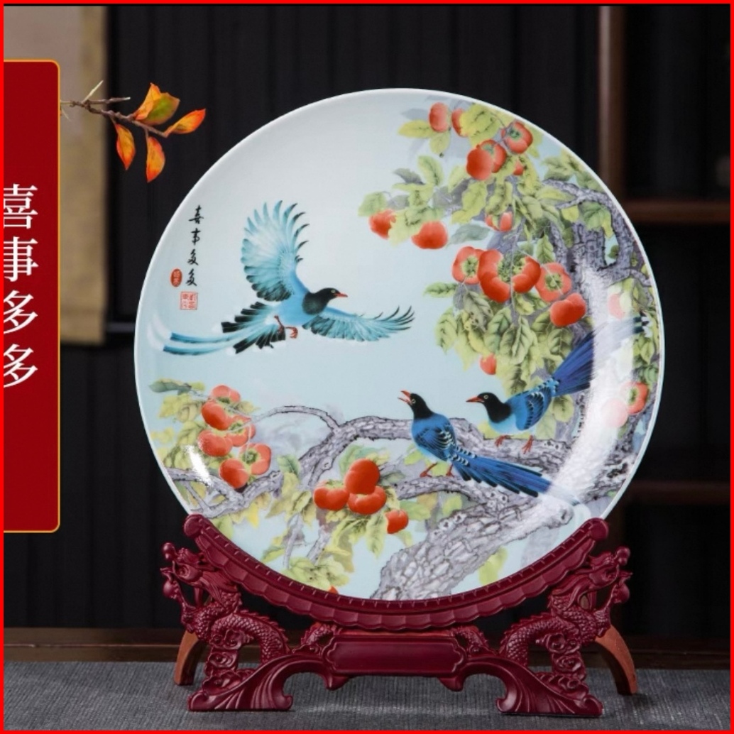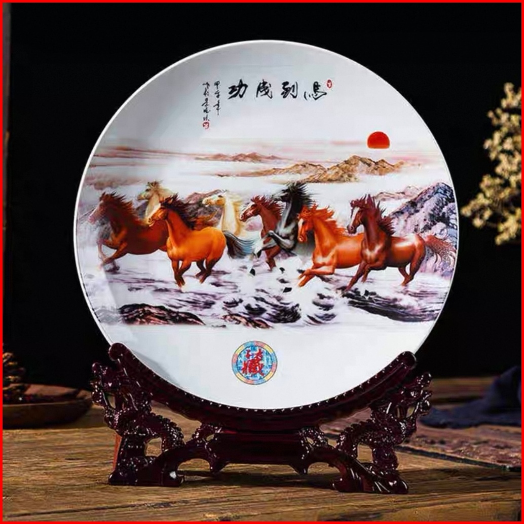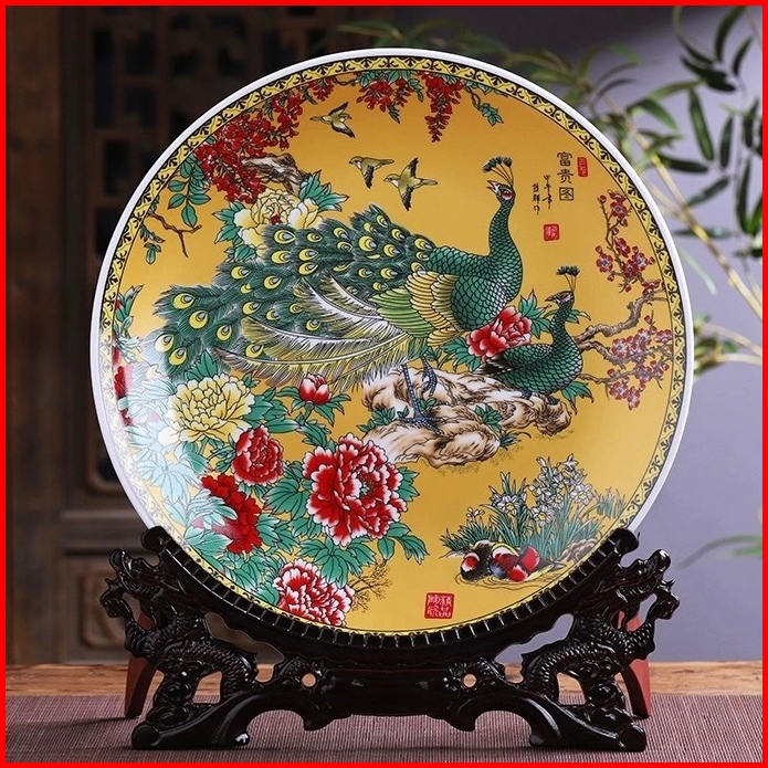 Vaes Pajangan Piring Ornamen Keramik Rak Kayu Naga Dekorasi Elegan Ruang Tamu Hiasan Living Room