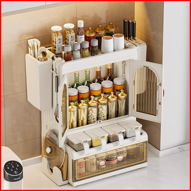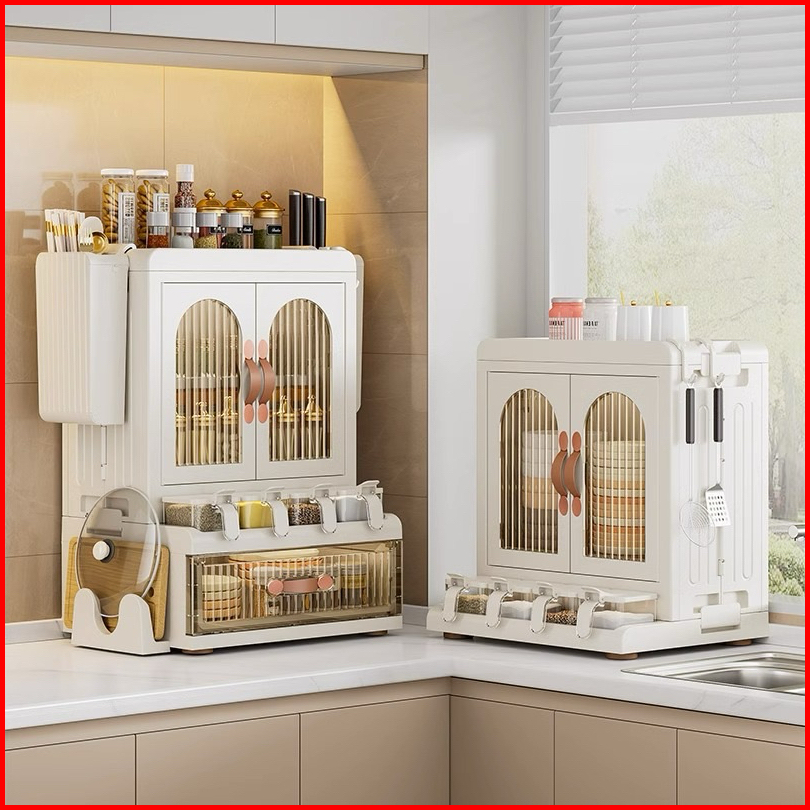 Alby Mart Rak Bumbu Dapur Estetik Model Lemari Mewah Kitchen Organizer Tertutup Seasoning Rack