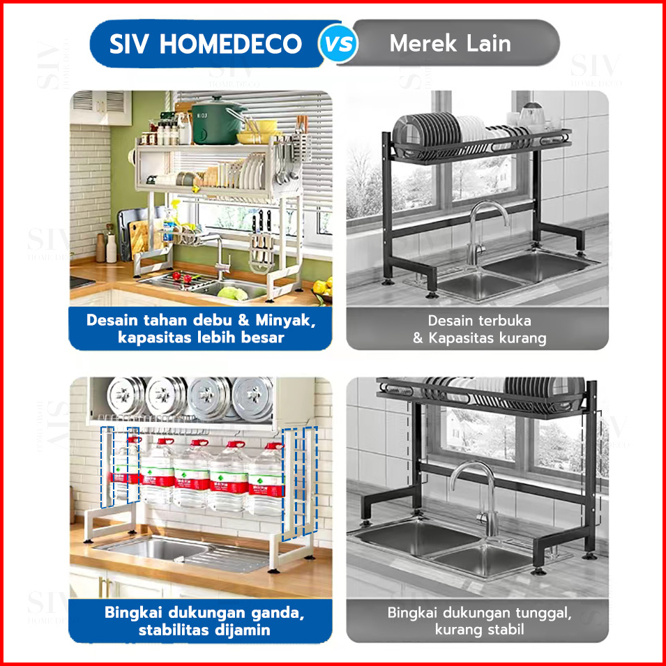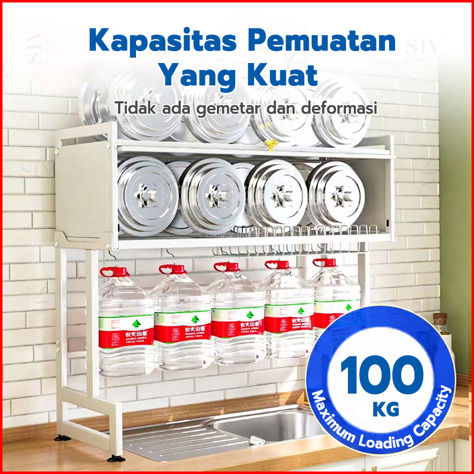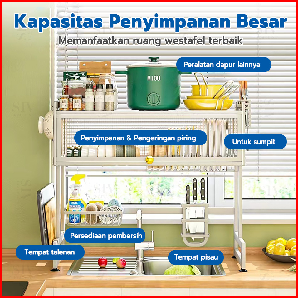 Siv Rak Piring Wastafel Dengan Kabinet Rak Wastafel Cuci Piring Rak Piring Stainless Steel Rak Dapur Multifungsi Dengan
