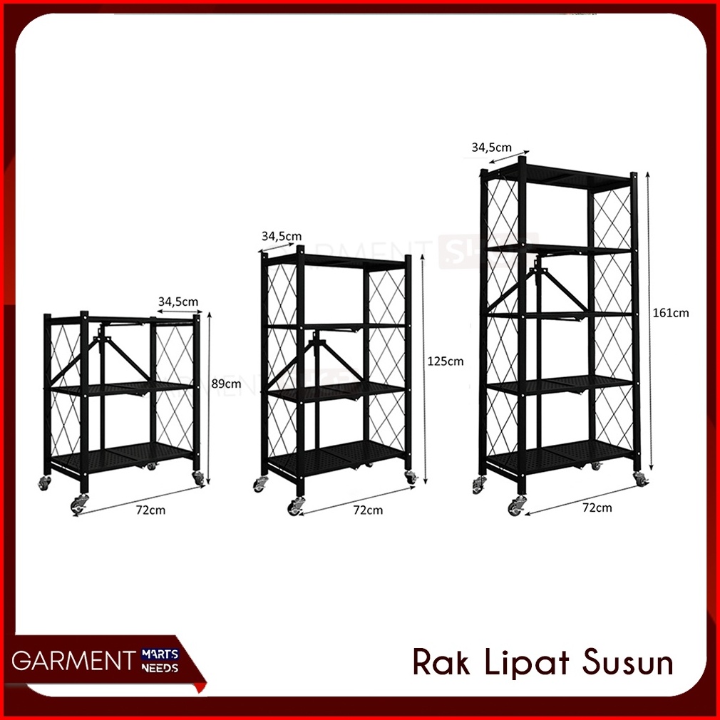 Rak Dapur Lipat Serbaguna Tanpa Mur Baut 3 4 5 Susun Stainless Steel Rumah Ringkas Praktis Hitam Besi Kuat Kokoh