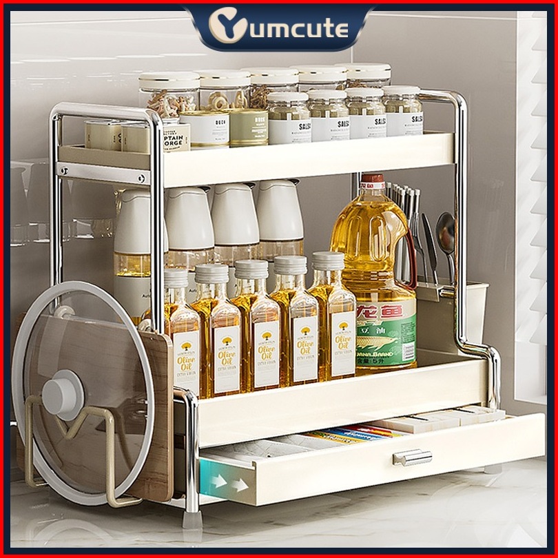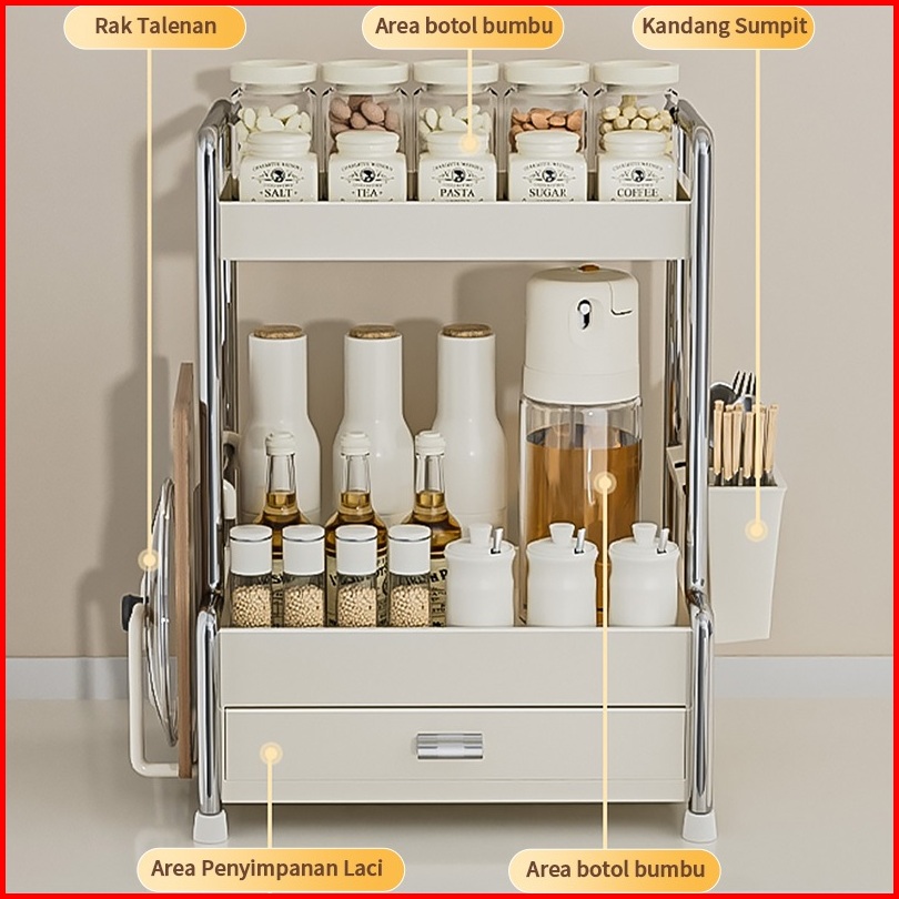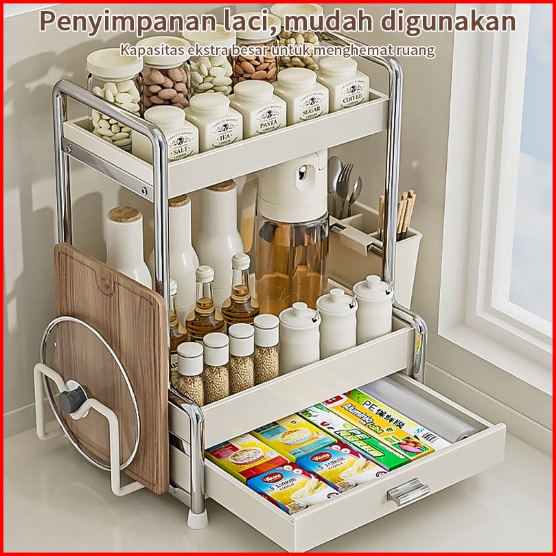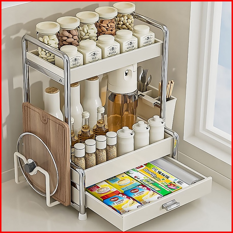 Rak Penyimpanan Multifungsi Dapur Baja Tahan Karat Rak Bumbu Meja Rak Penyimpanan Cuka Saus Minyak Garam