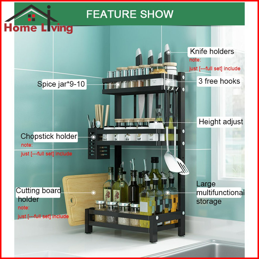 Hl Rak Bumbu 2 Or 3 Tingkat Rak Susun Bumbu Dapur Multifungsi Rak Penyimpanan Bumbu Dapur