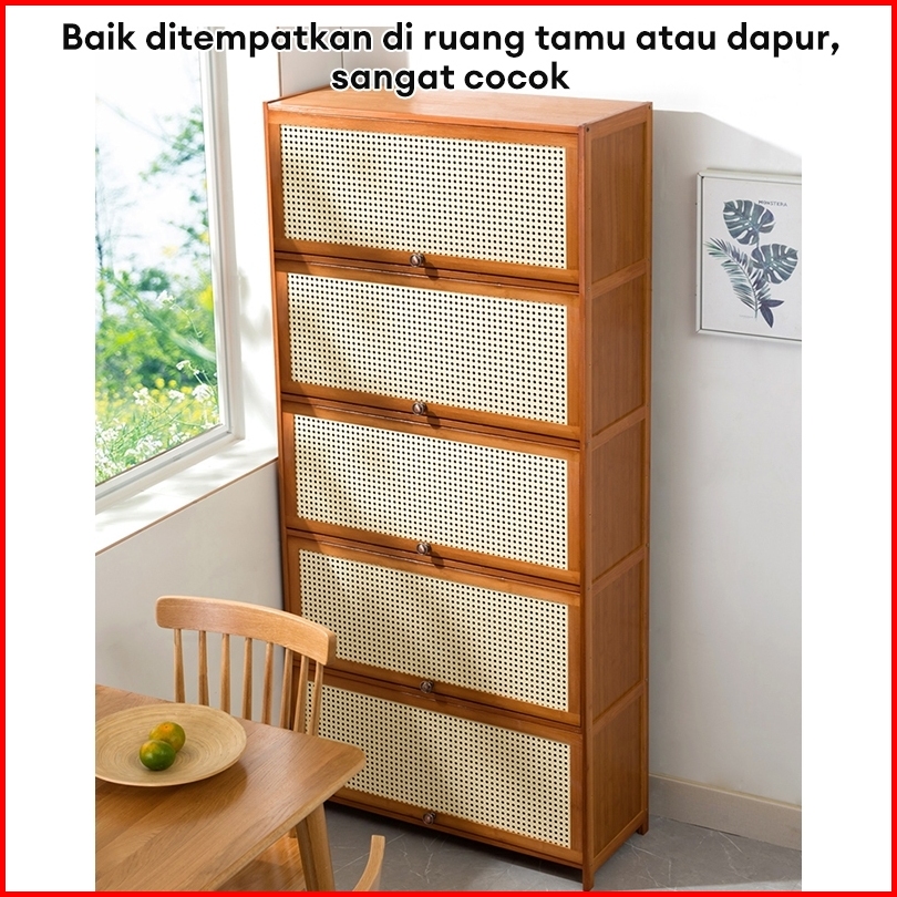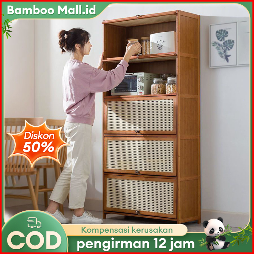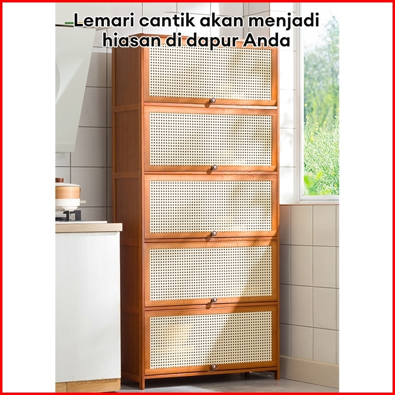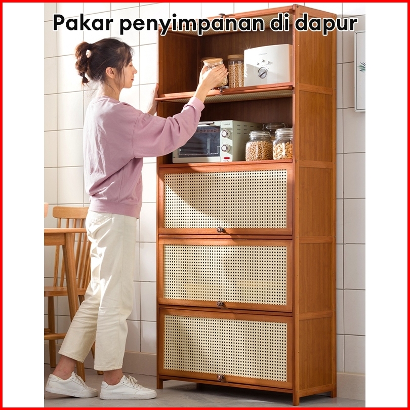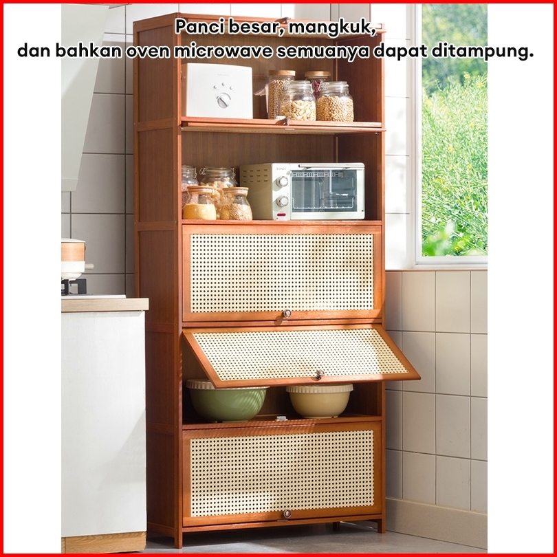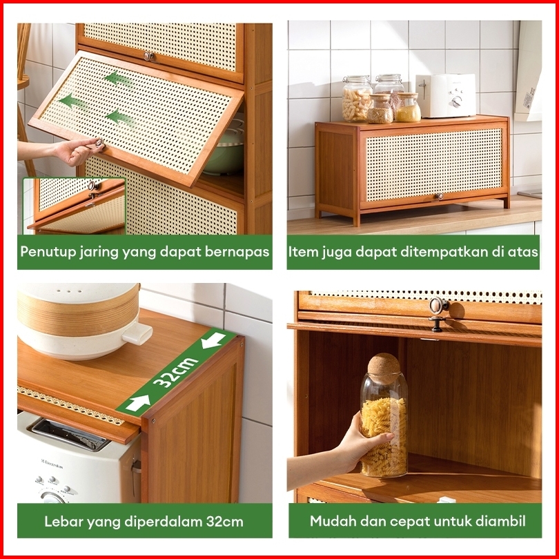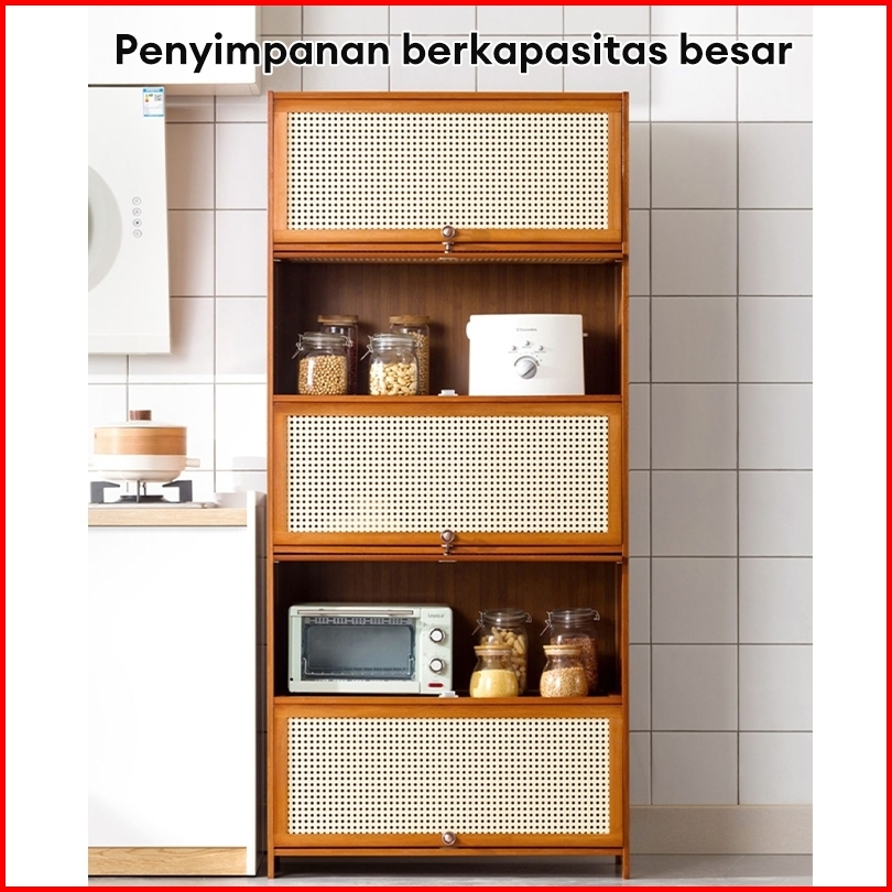 Rak Dapur Rak Peralatan Dapur Serbaguna Lemari Dapur Lemari Kayu Rotan Rak Oven Microwave Tertutup