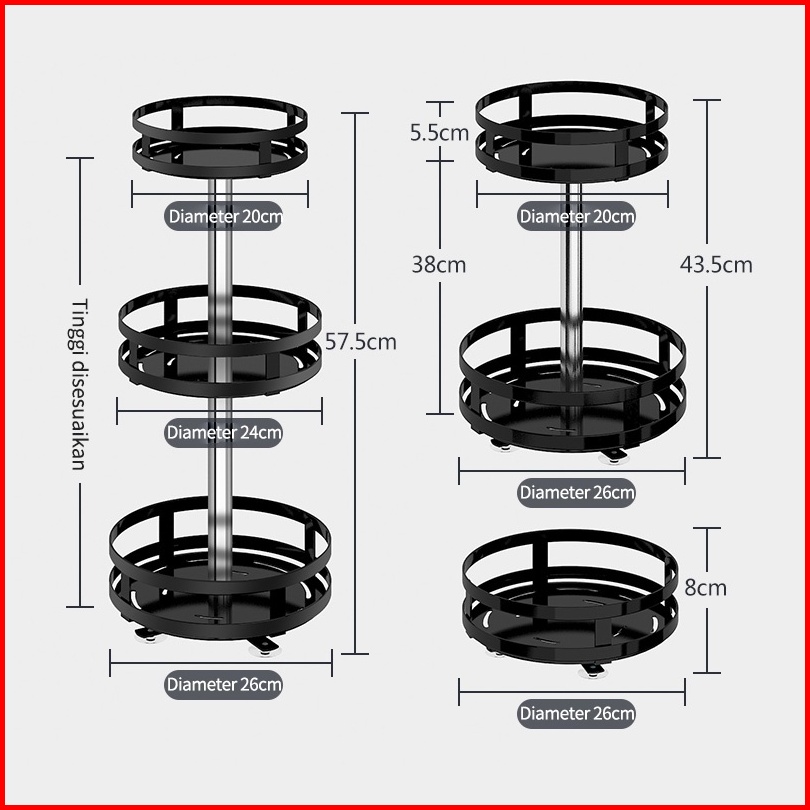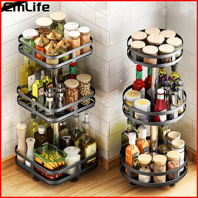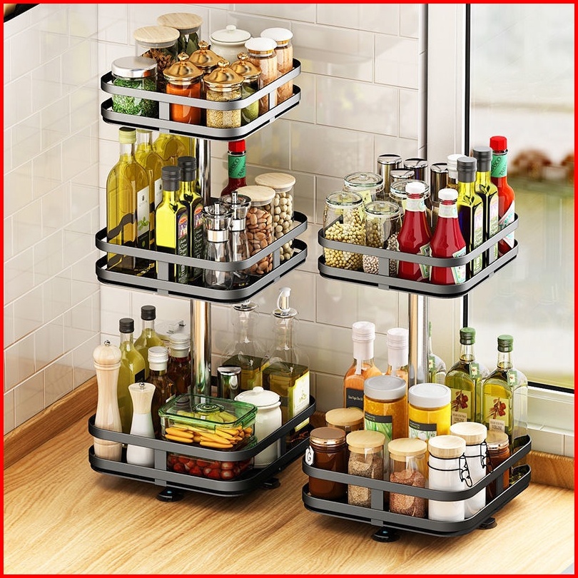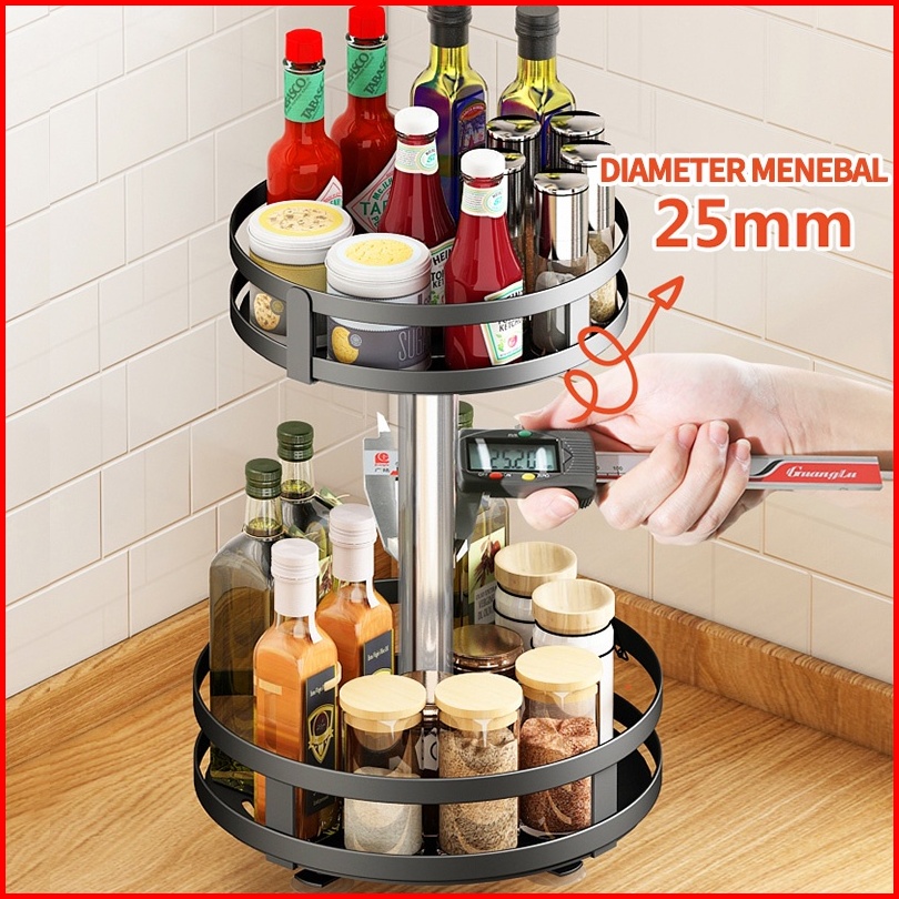 Rak Bumbu Putar Berputar 360 Derajat Rak Bumbu Dapur Stainless Rotate Kitchen Spice Rack Organizer