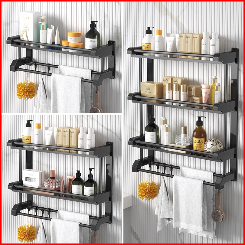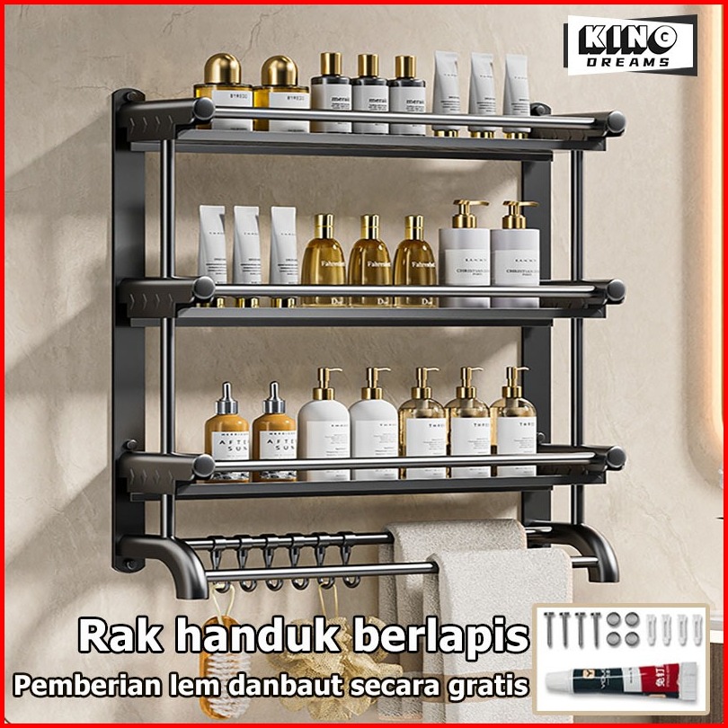 King Dreams Rak Sabun Kamar Mandi Rak Kamar Mandi Stainless Hitam Dinding Rak Bumbu Dapur Dipasang Tanpa Harus Dilubangi