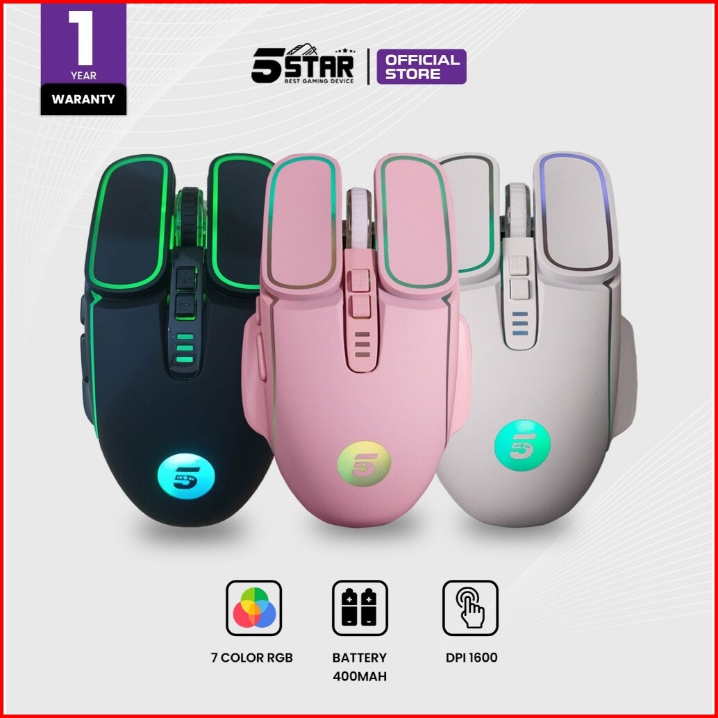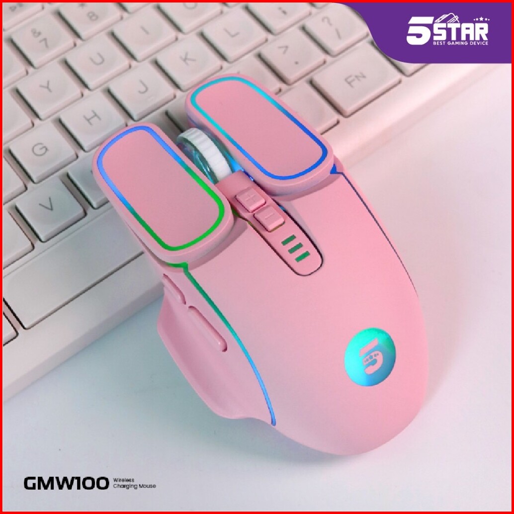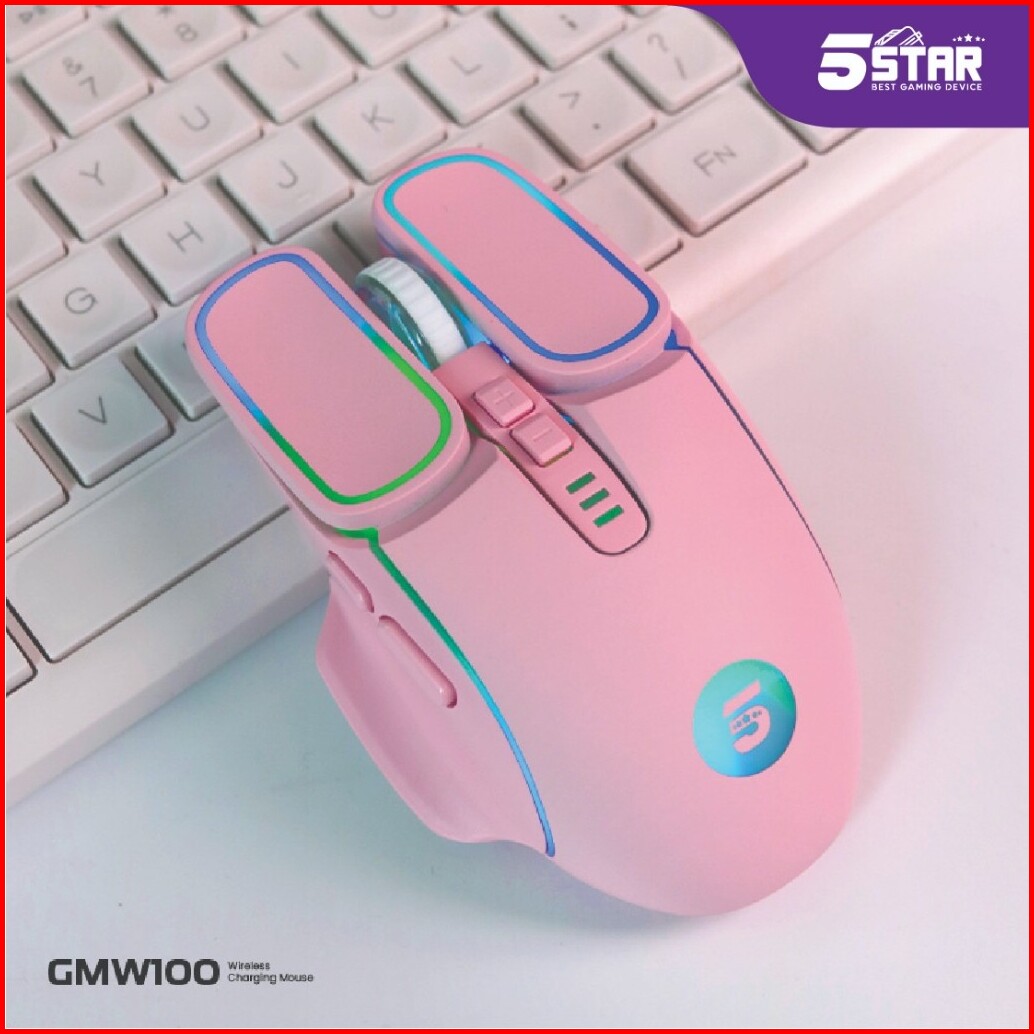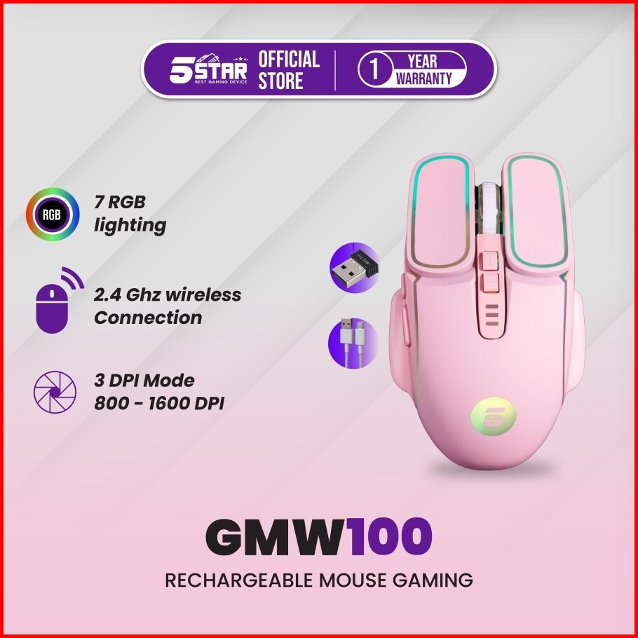 5star Mouse Pink Wireless Gaming Rechargeable Baterai Type-c Fast Charging 1600dpi Rgb Light Gmw100