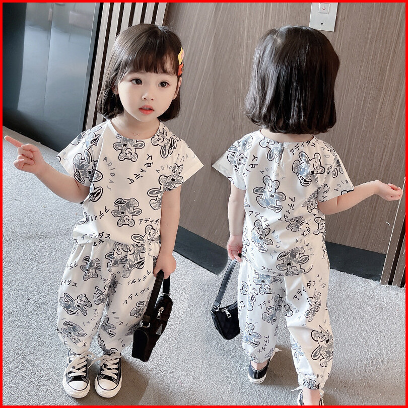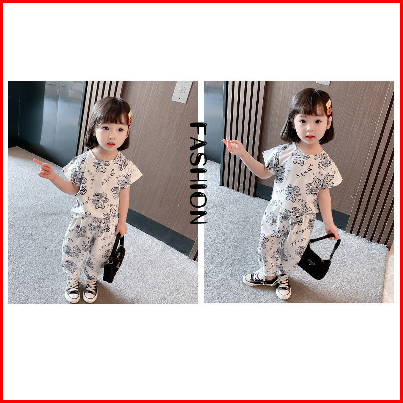 Baju Anak Setelan Santai Perempuan Motif Celana Panjang Bear Import