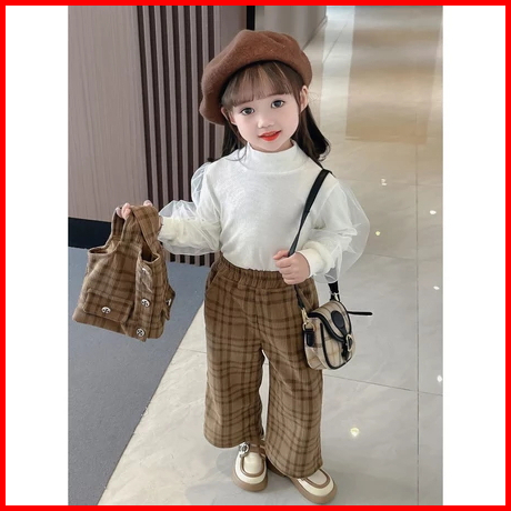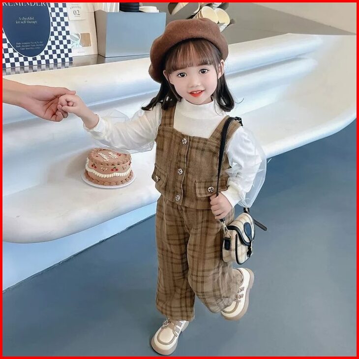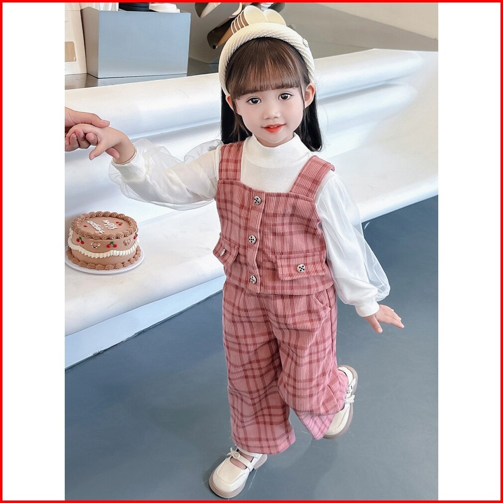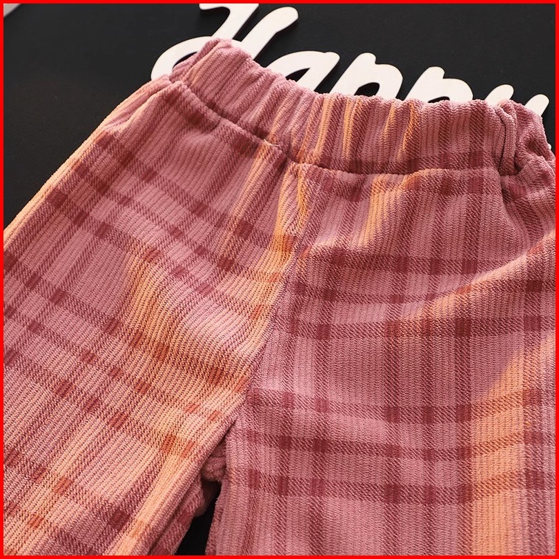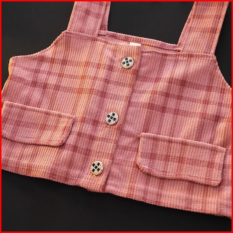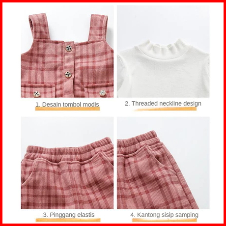 Kidsmains Setelan Baju Bayi Anak Cewek Perempuan Korea Katun Bahan Tartan Casual Style Usia 1-4 Thn