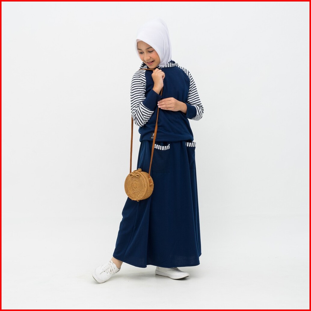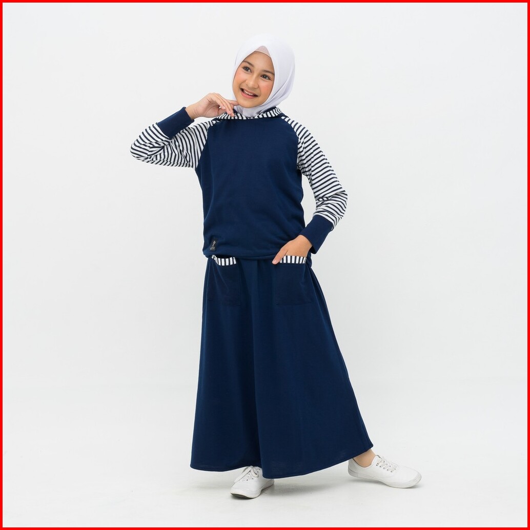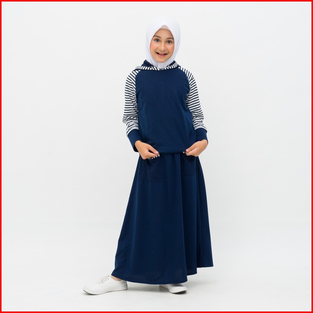 Applekidz Setelan Rok Hoodie Baju Muslim Anak Perempuan Nadine Navy