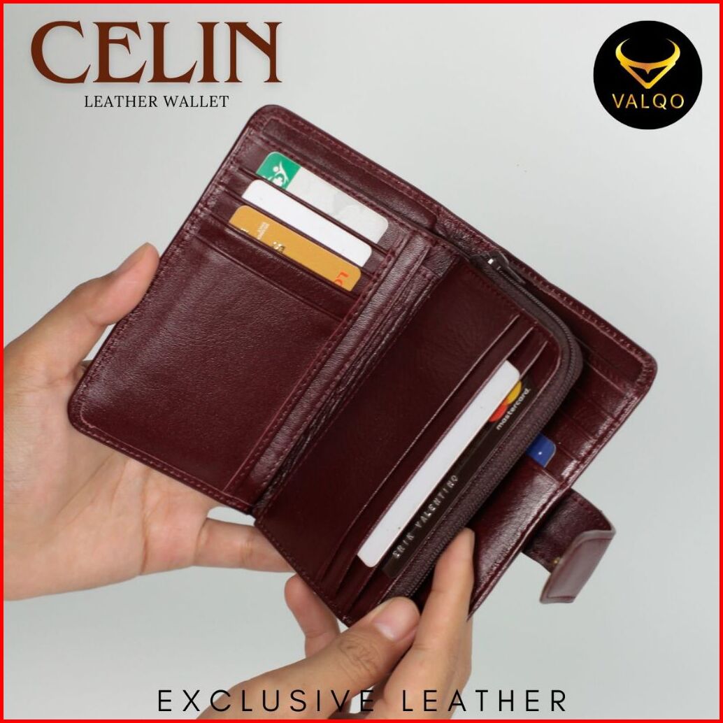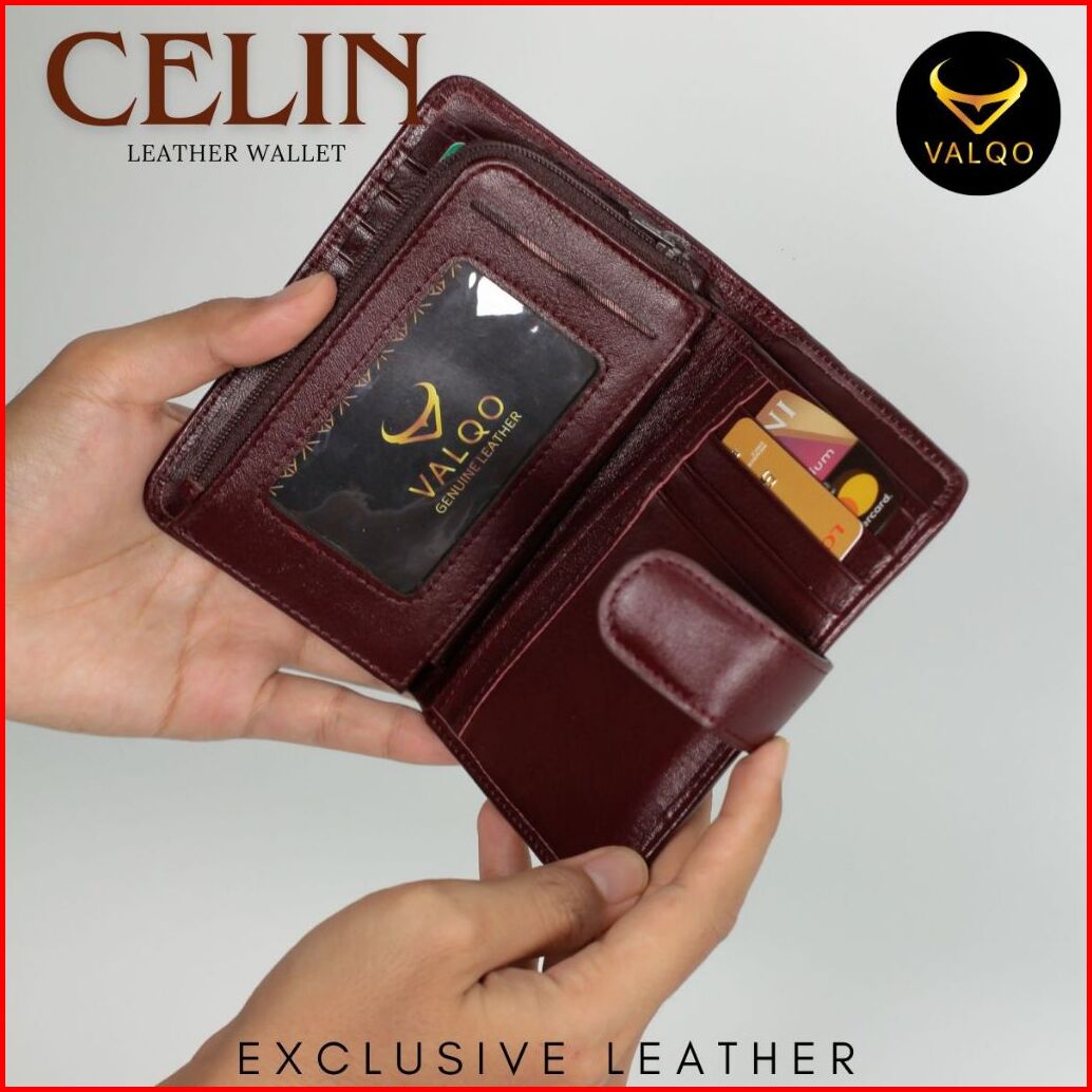 Valqo Celia Dompet Kecil Wanita Kulit Sapi Cewek Perempuan Dompet Pendek Dompet Kartu Dompet Lipat Mini