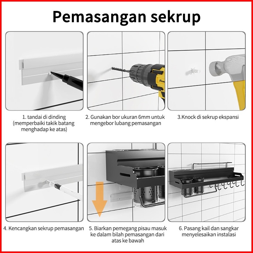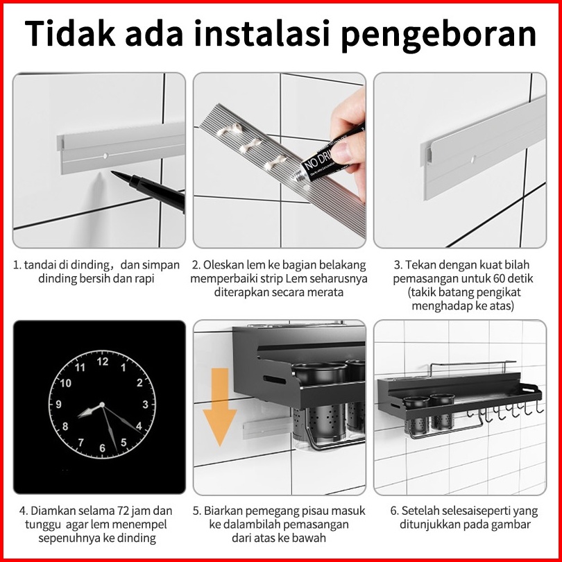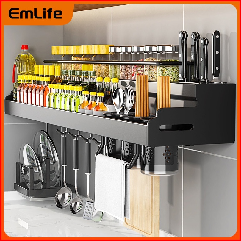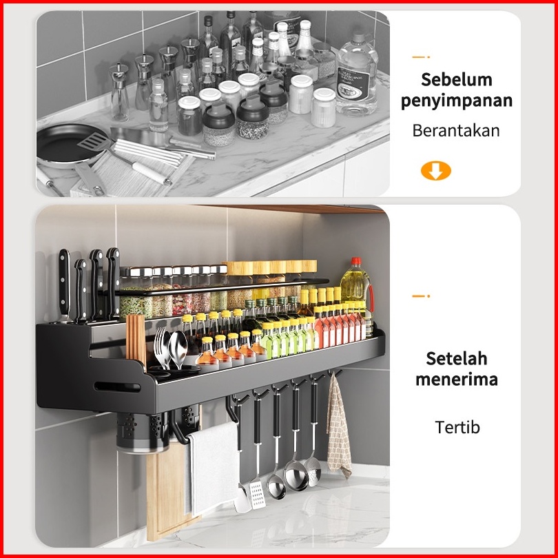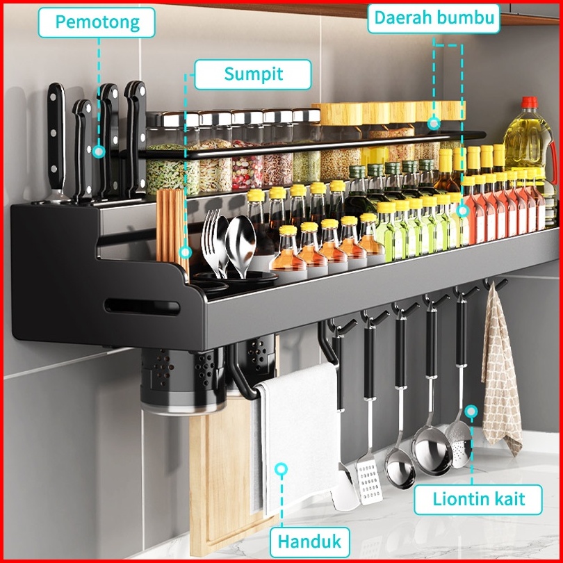 Rak Bumbu Yang Dipasang Dinding Rak Penyimpanan Dapur Rak Pisau Hitam Rak Multifungsi