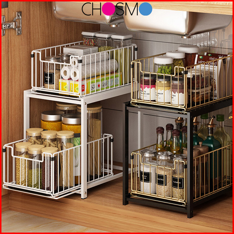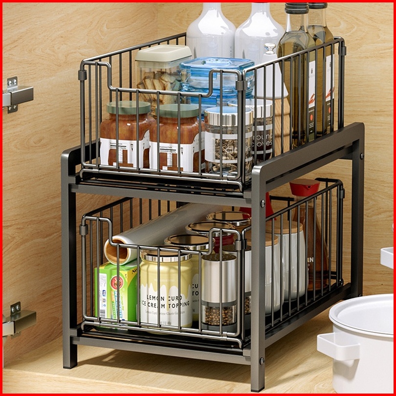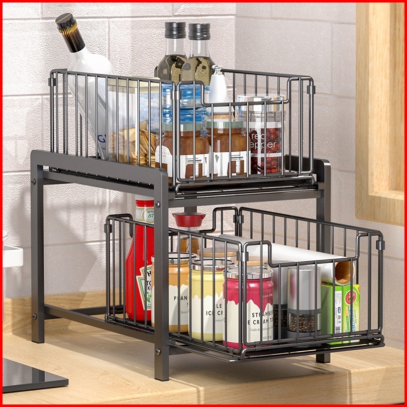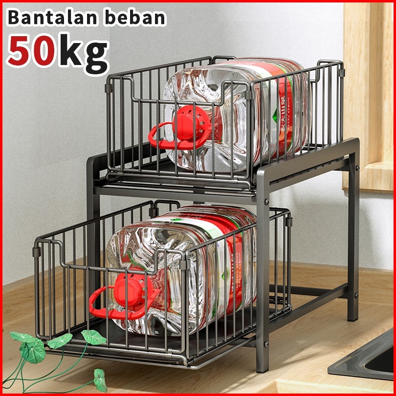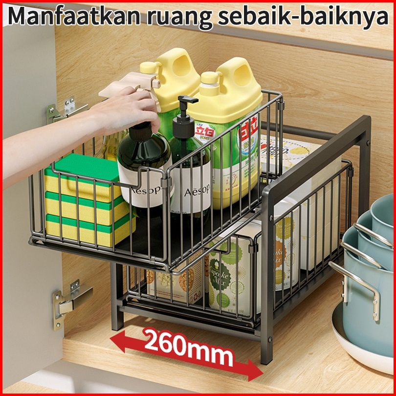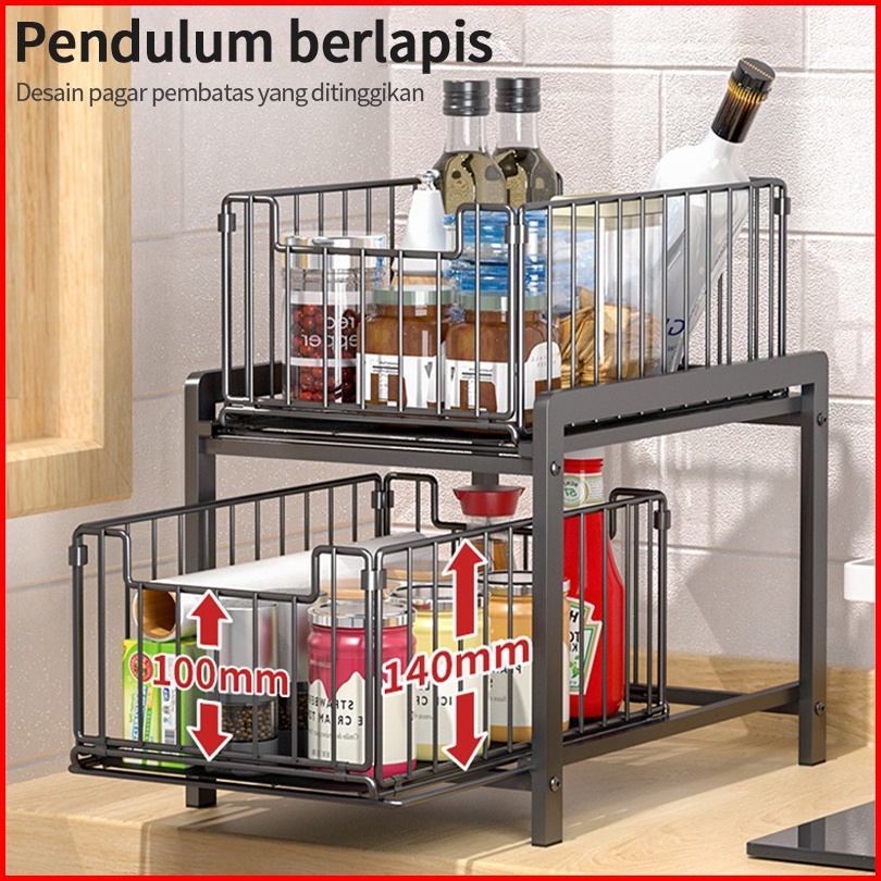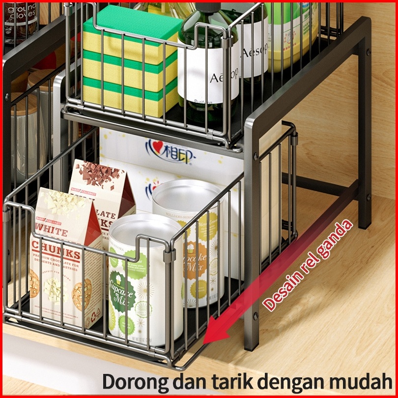 Rak Dapur Bawah Wastafel Kitchen Rack Rak Kabinet Lemari Dapur Keranjang Geser Laci Rak Tarik Rak