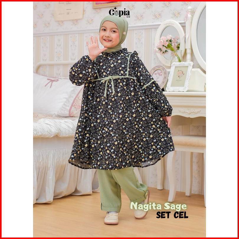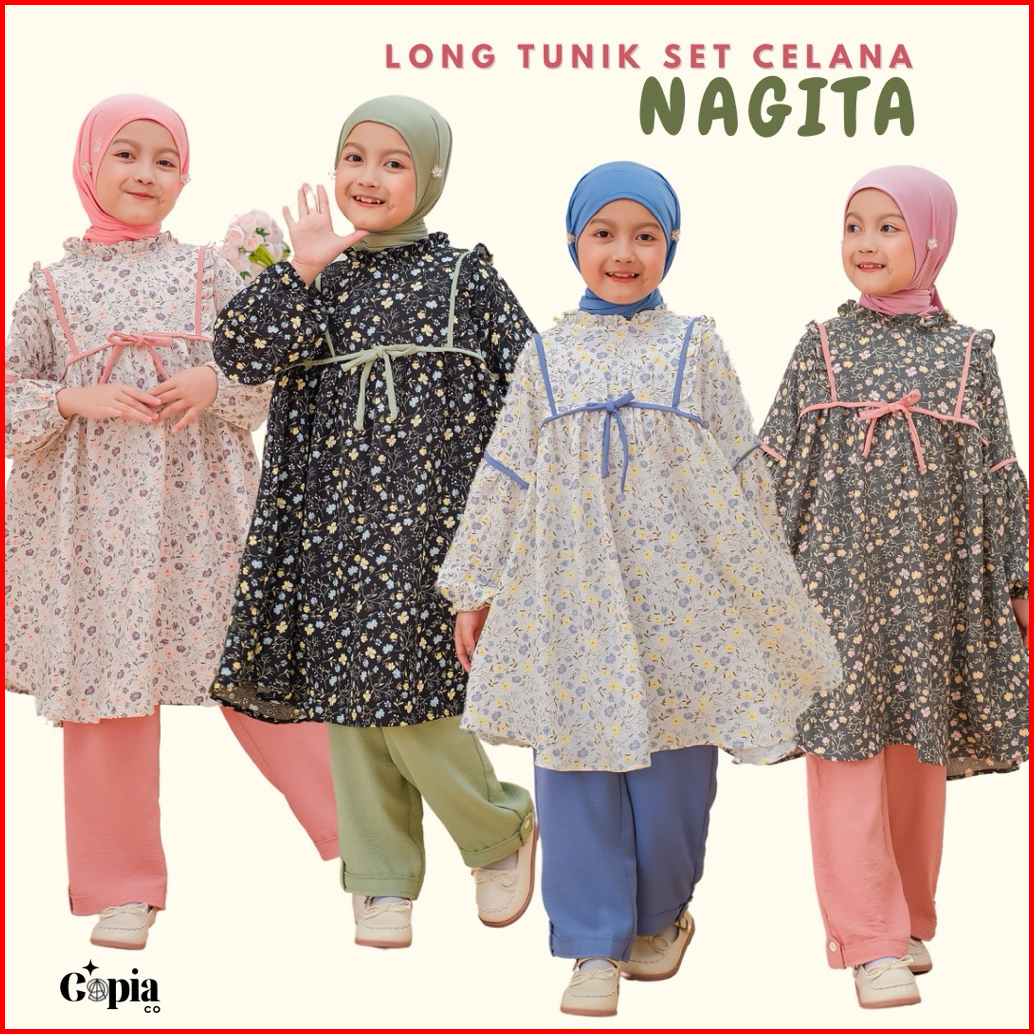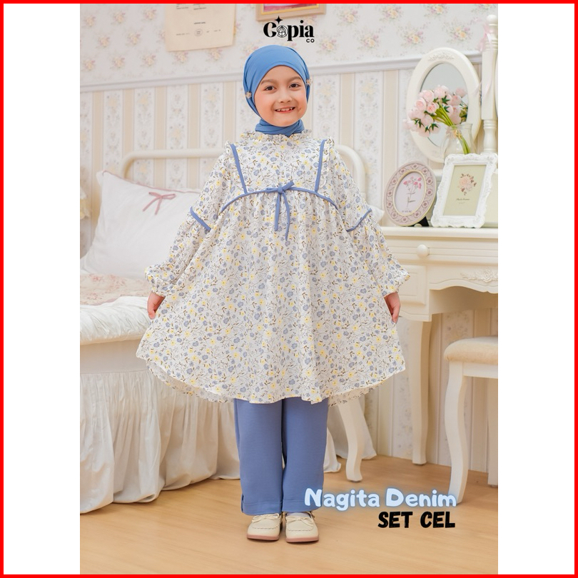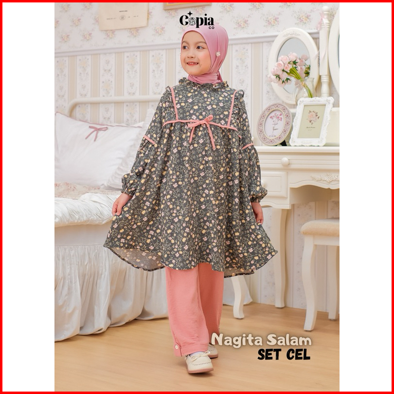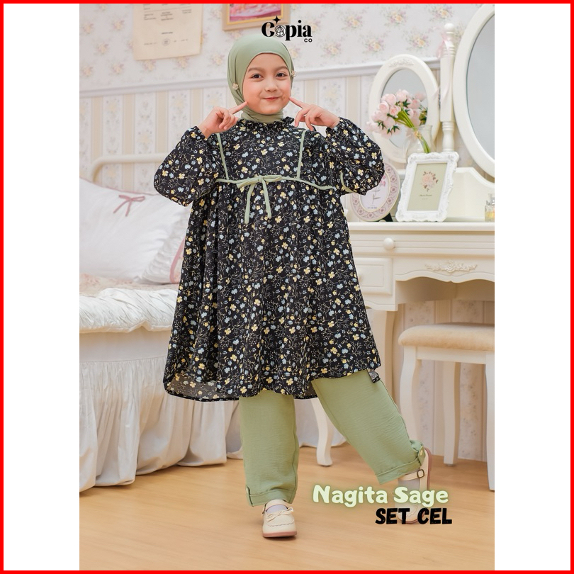 Copiaco - One Set Nagita Stelan Anak Perempuan Long Tunik Set Celana Umur 3 -13 Tahun All Varian