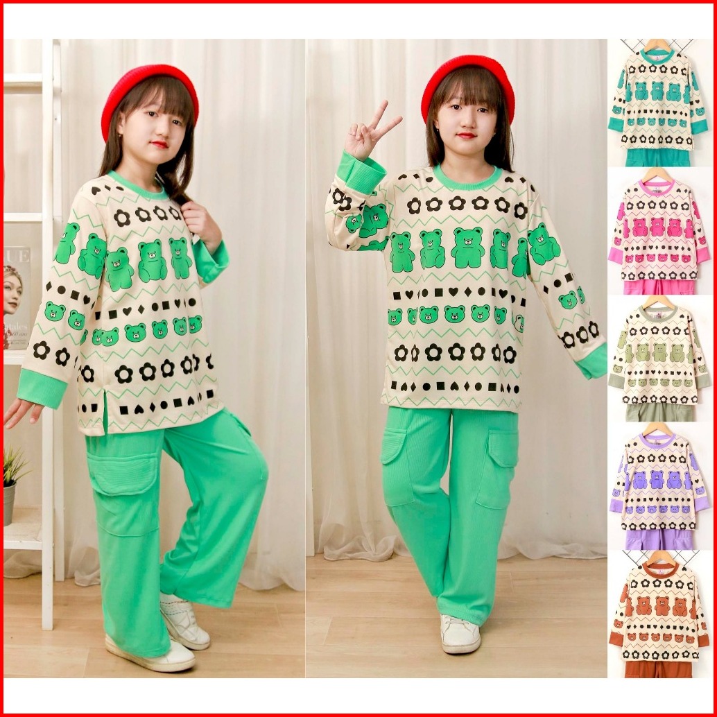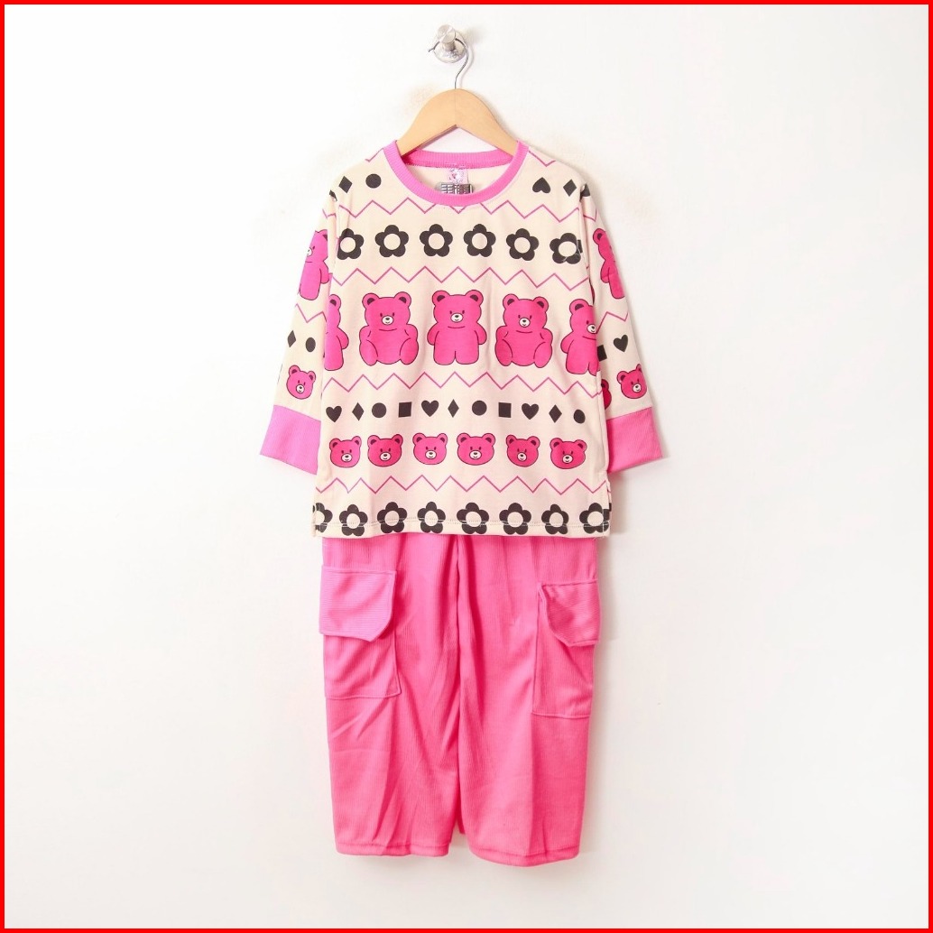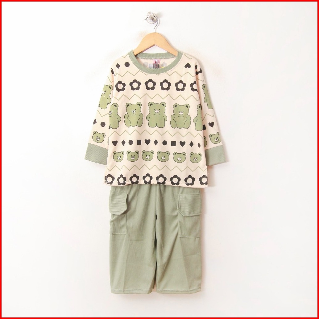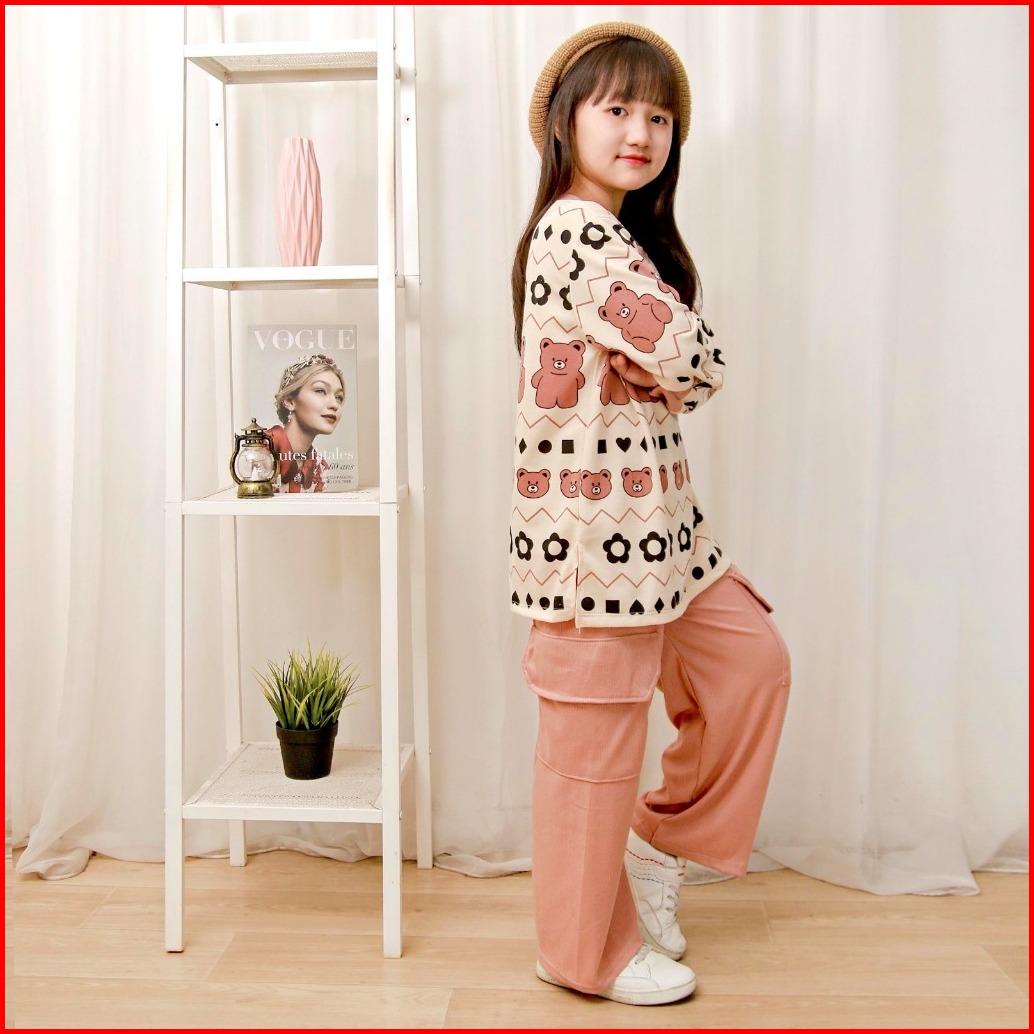 Kiyosaki Kids - Stelan Premium Oversize Celana Kargo Anak Perempuan Usia 3-10 Tahun Celana Kargo Anak Bear