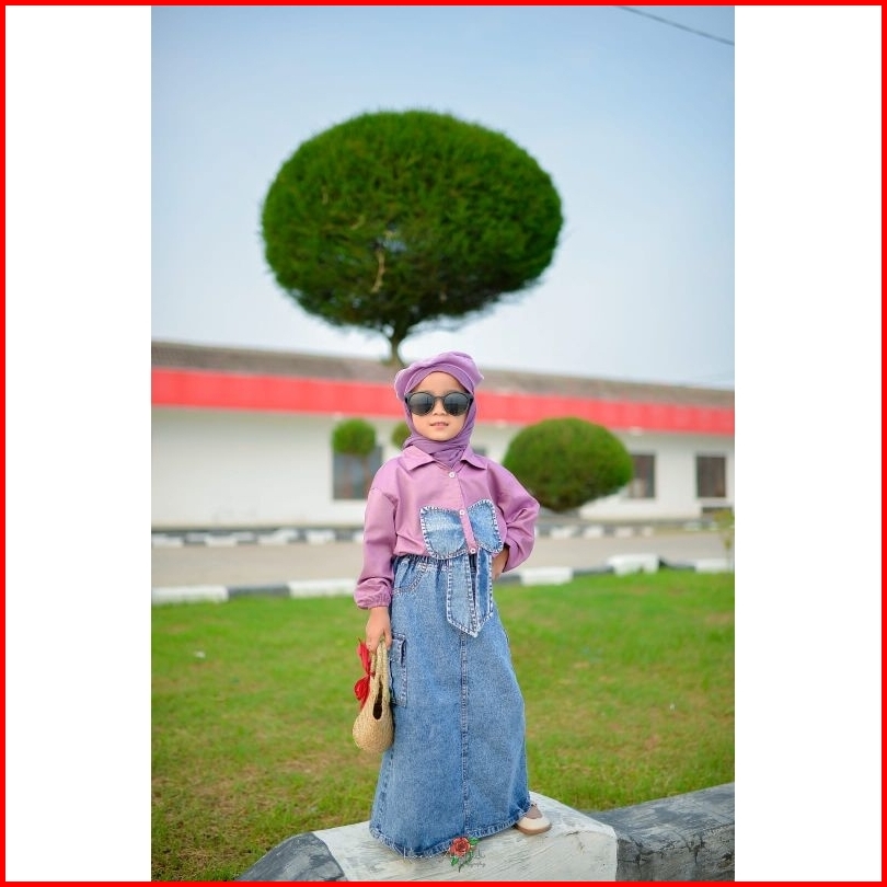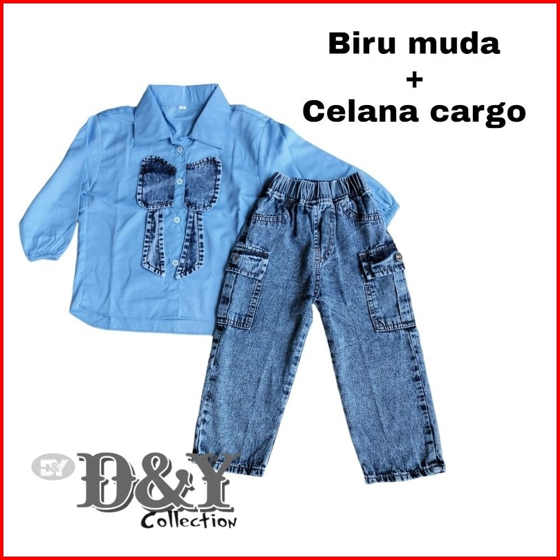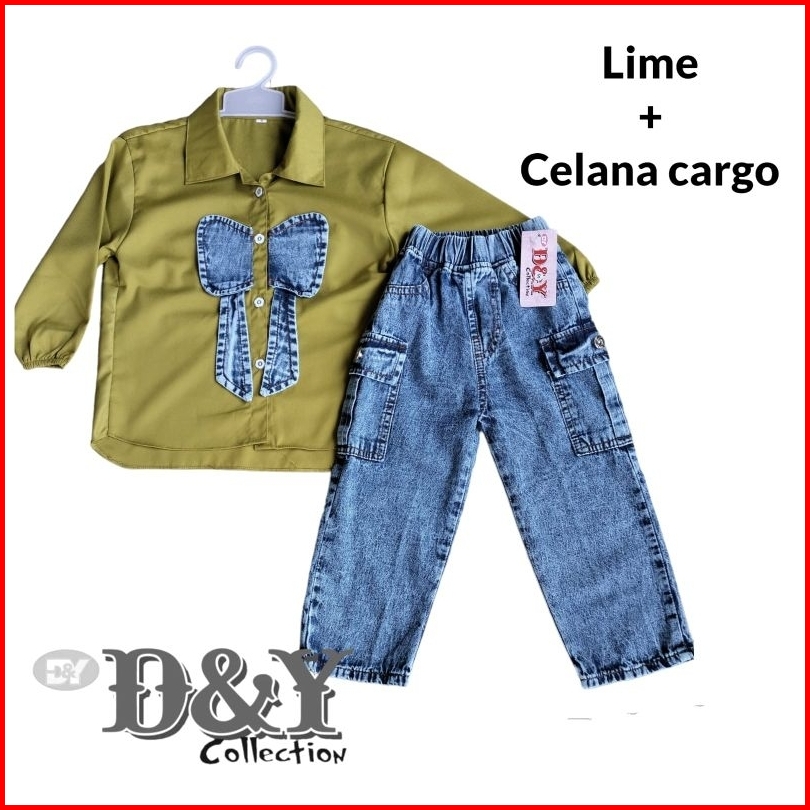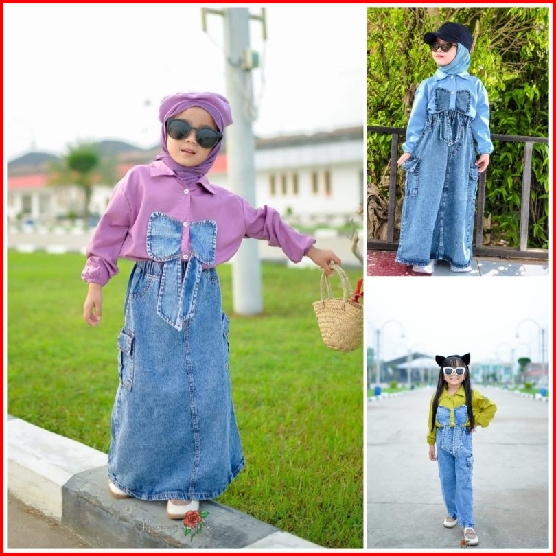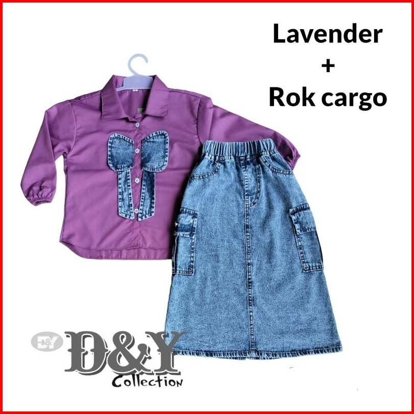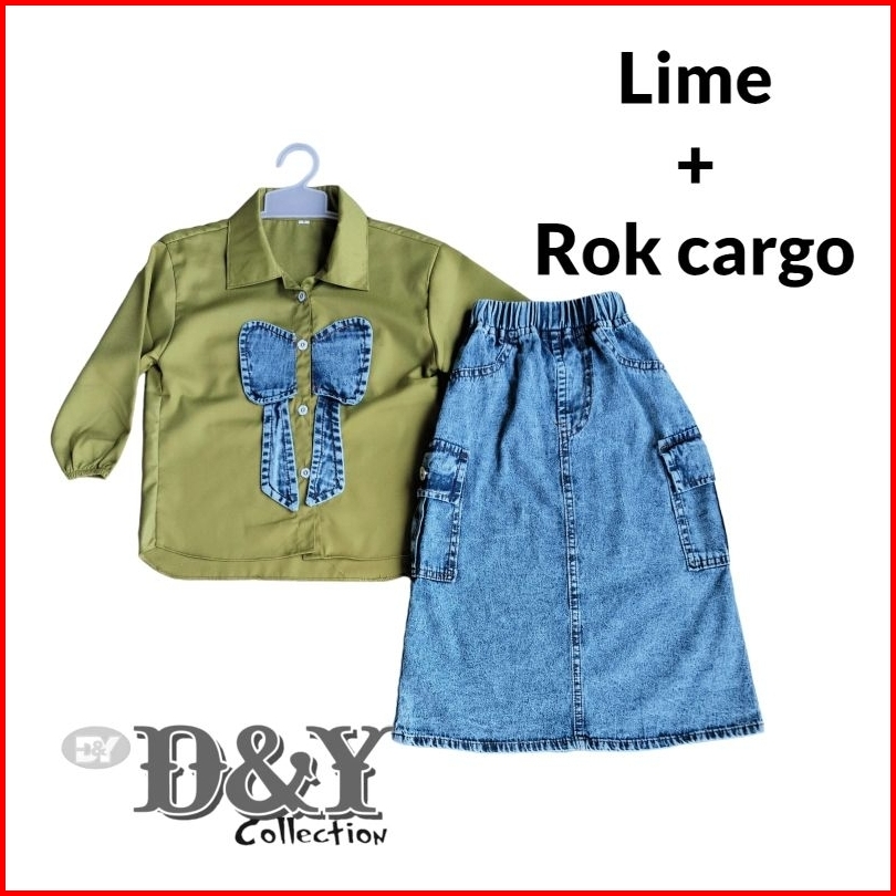 Setelan Kupu-kupu Kemeja Dan Rok Cargo Usia 2-12tahun