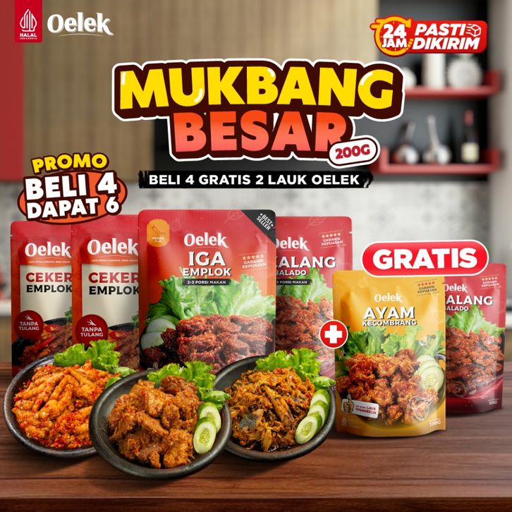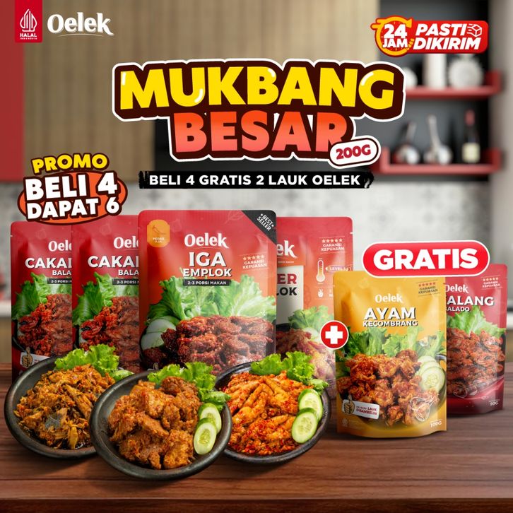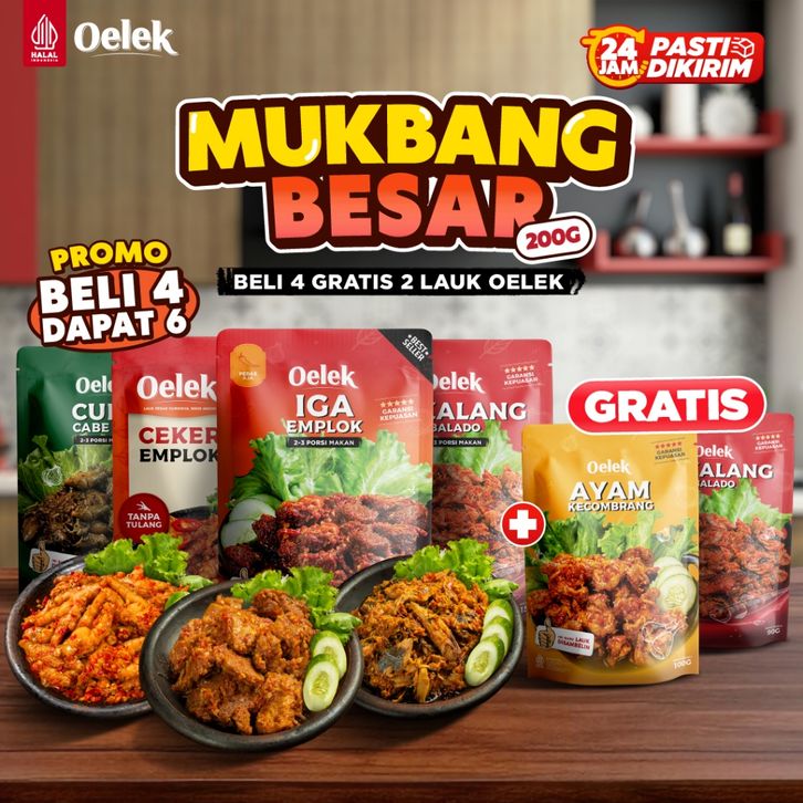Gratis 2 Lauk Oelek - Oelek Mukbang Besar 4 Lauk 200gr Bebas Pilih Gratis 2 Lauk Oelek 100 Gr / Iga Emplok / Ceker Emplo