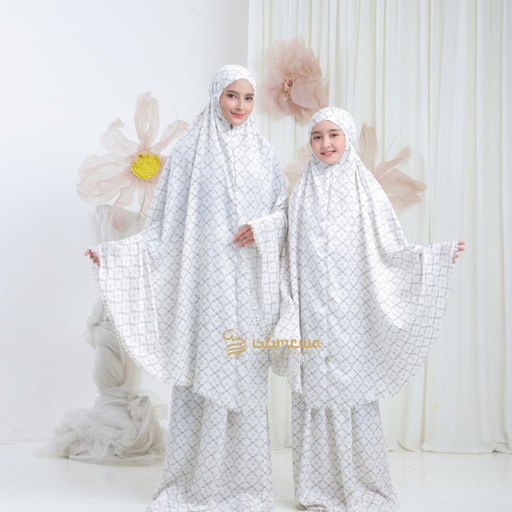 [Star] MUKENA COUPLE IBU ANAK Istimewa - Mukena Dewasa 2in1 Santorini Silk Couple Ibu dan Anak Shazia Series