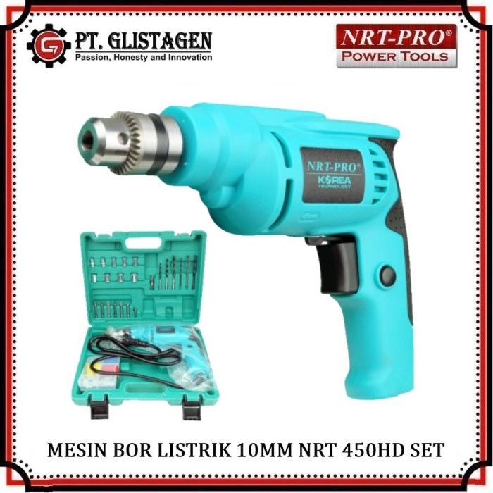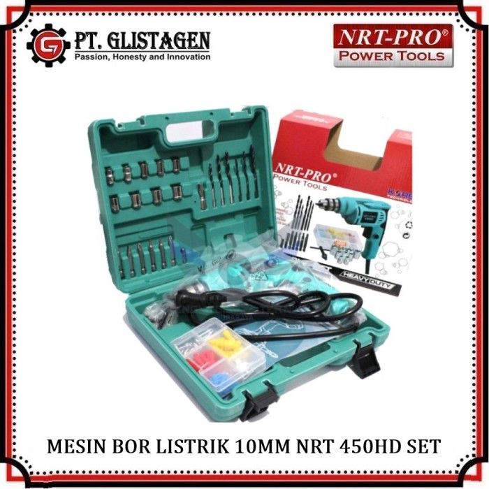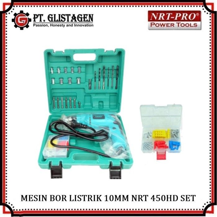 Mesin Bor Tangan Listrik 10mm Set Mata Bor Komplit NRT-PRO 450T Set