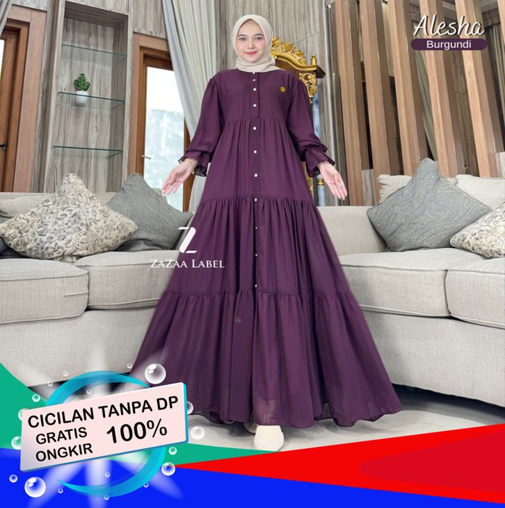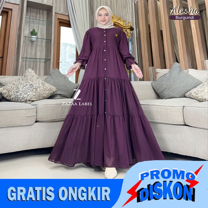Zazaa Label - Alesha Dress Premium Ceruty Babydoll Jumbo Formal Terlaris Terbaru Termurah Best Seller Gamis Wanita Kekin