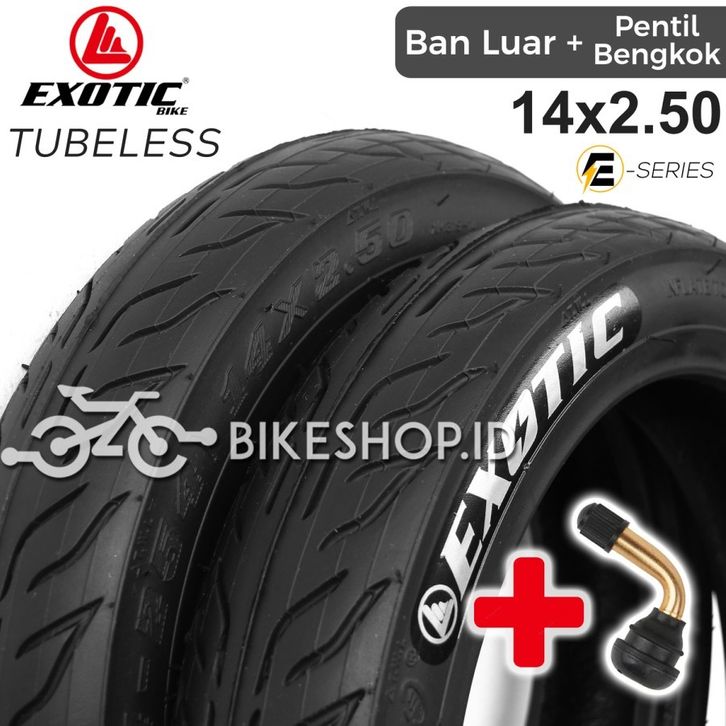 Ban luar sepeda listrik 14 x 2.50 inch ban tubeless exotic dan pentil miring Pvr 50 high quality new termurah