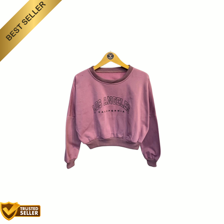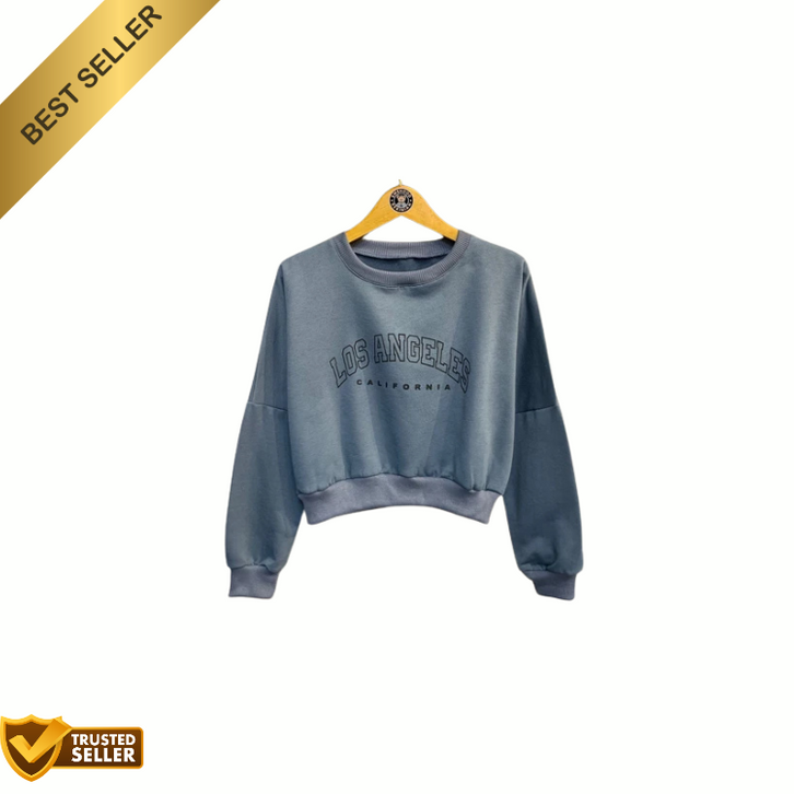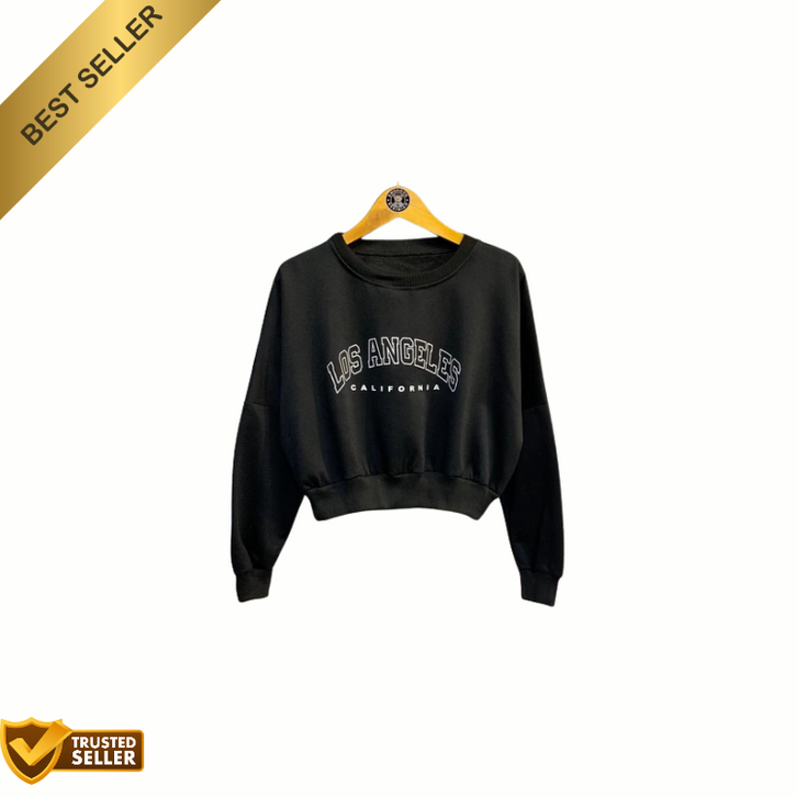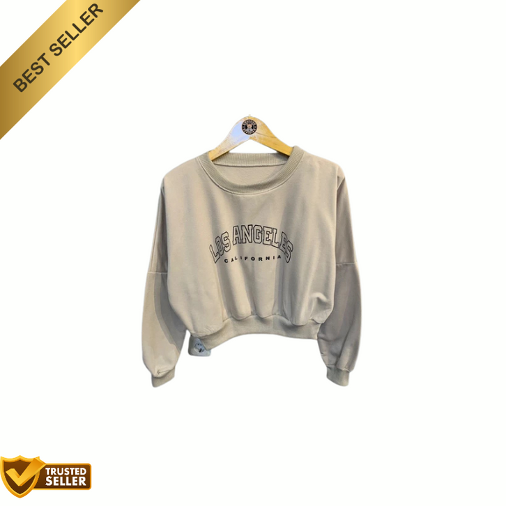CROOPE LOS ANGELES SWEATER CROP ALA KOREA CREWNECK SWEATSHIRT WANITA KEKINIAN OVERSIZE FASHION OUTFIT OOTD KOREAN