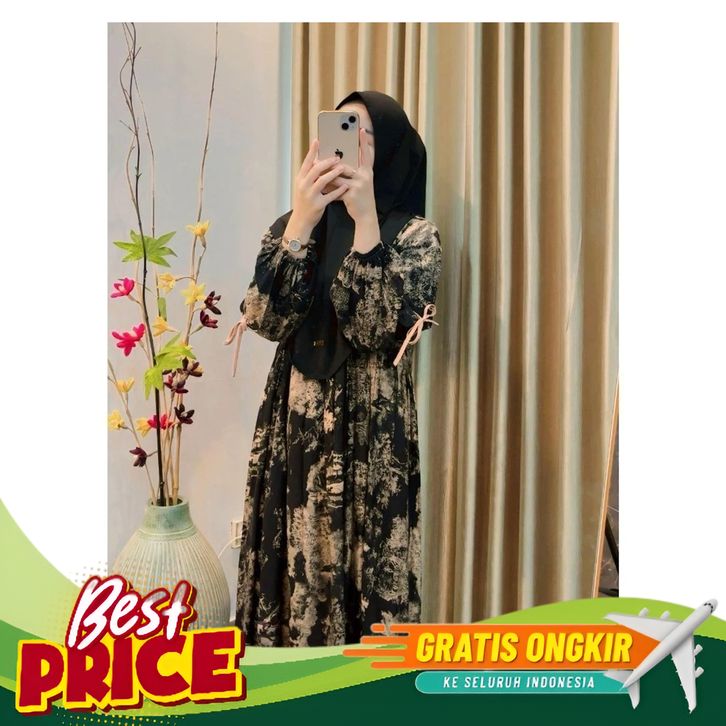 [Mall] Naila Gamis Rayon Motif Pita Bunga Wanita Women Floral Dress
