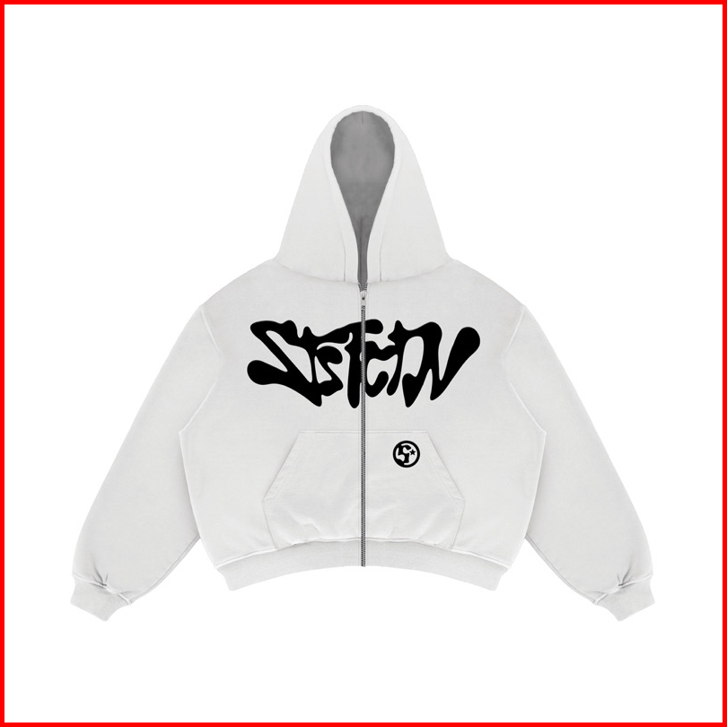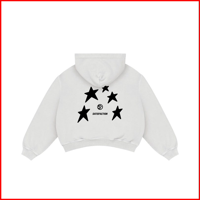 Satisfaction Hoodie Zipper Boxy 330gsm Starsy Puff White