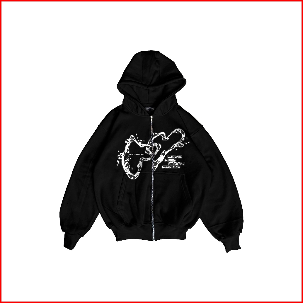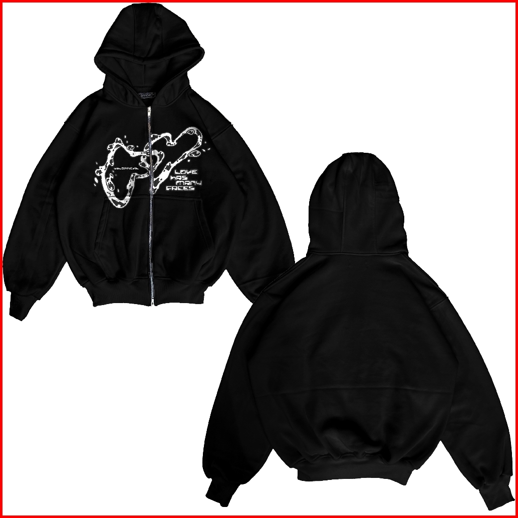 Udloff Hoodie Boxy Double Zipper Black Love Has Many Faces Oversize 280 330 Gsm Unisex Hoodie Brand Lokal Bandung Hoodie
