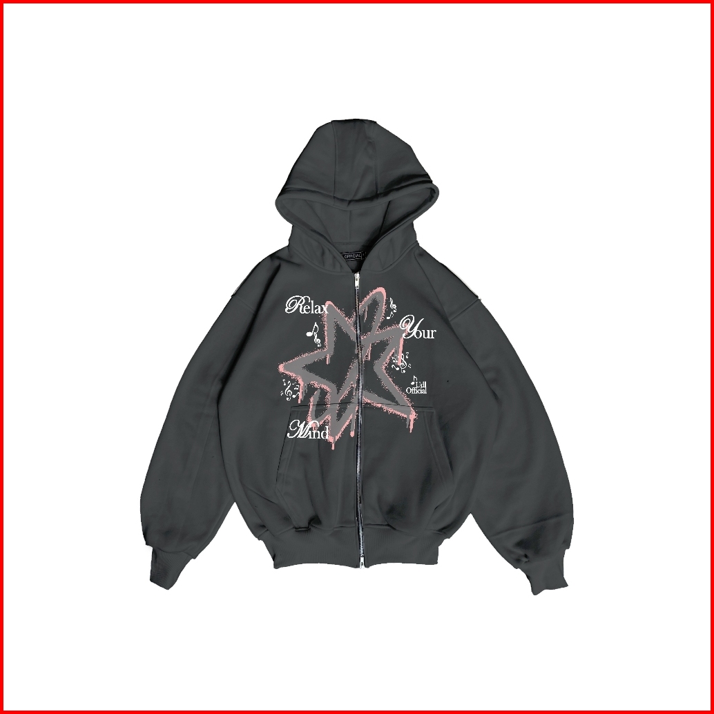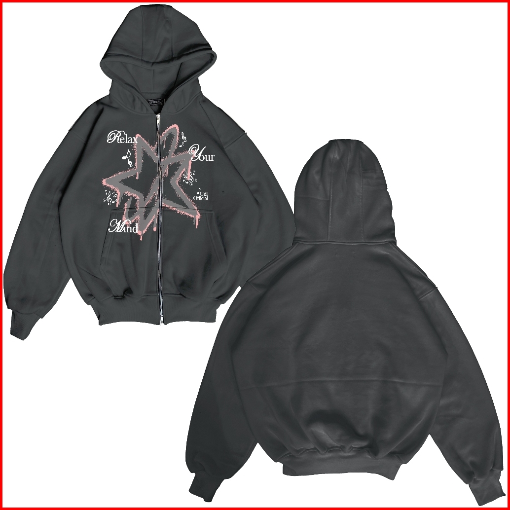Udloff Hoodie Boxy Double Zipper Darkgrey Relax Your Mind Oversize 280 330 Gsm Unisex Hoodie Boxy Premium Kekinian Hoodi