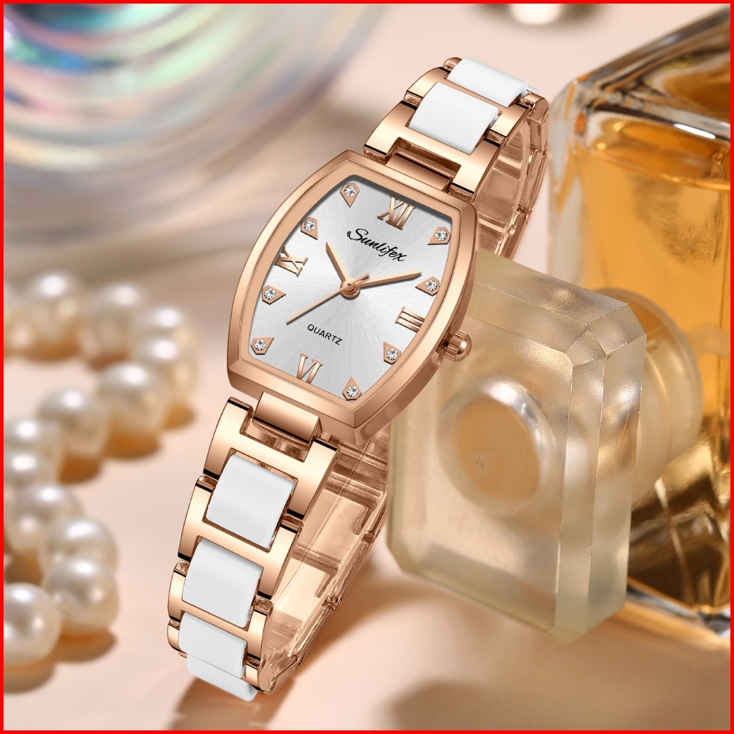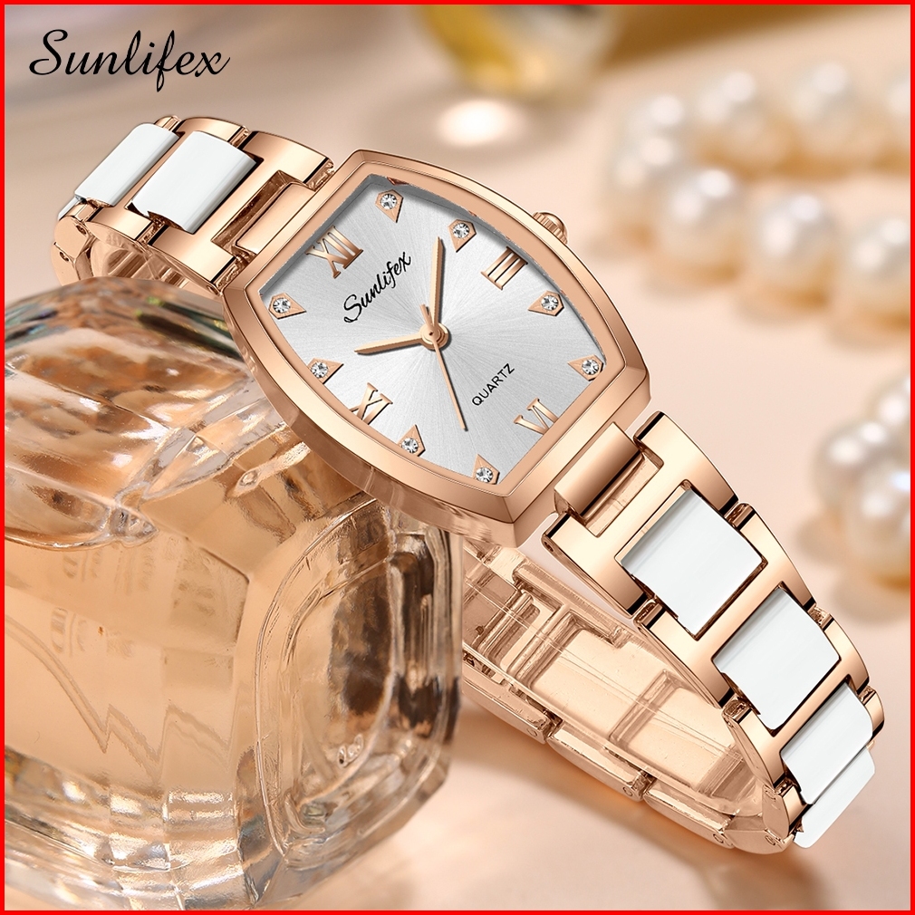 Sunlifex Jam Tangan Wanita Anti Air Kuarsa Elegan Korea Tali Keramik Kasual Jam Tangan Cewek Original 8016