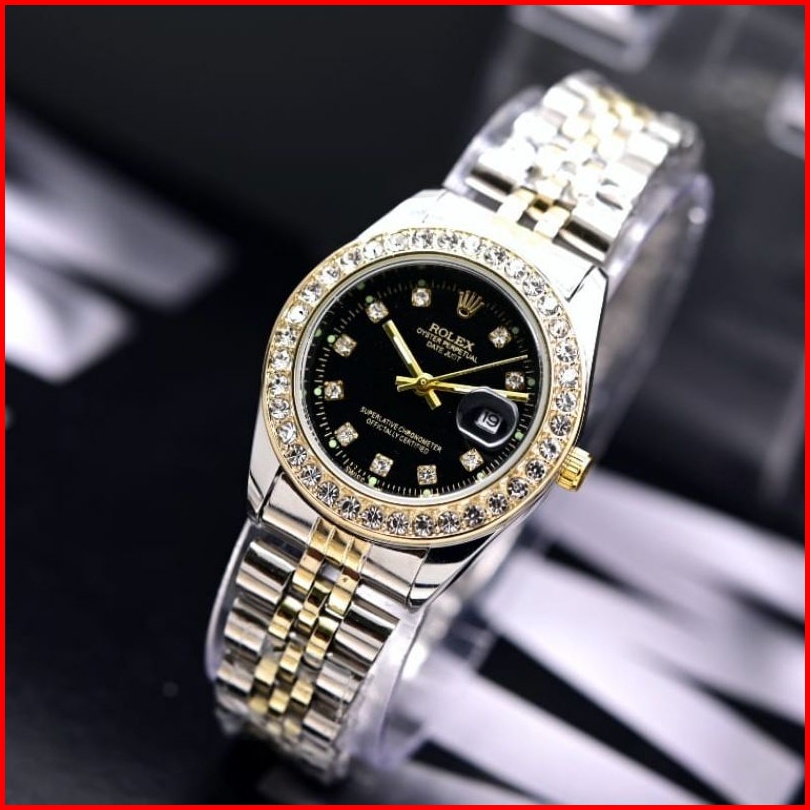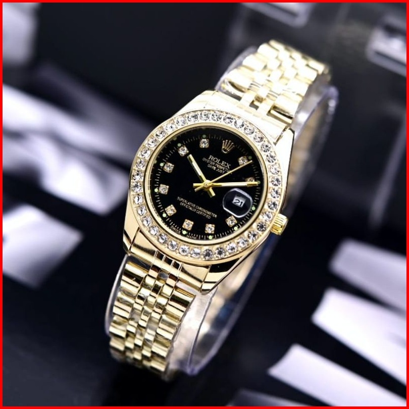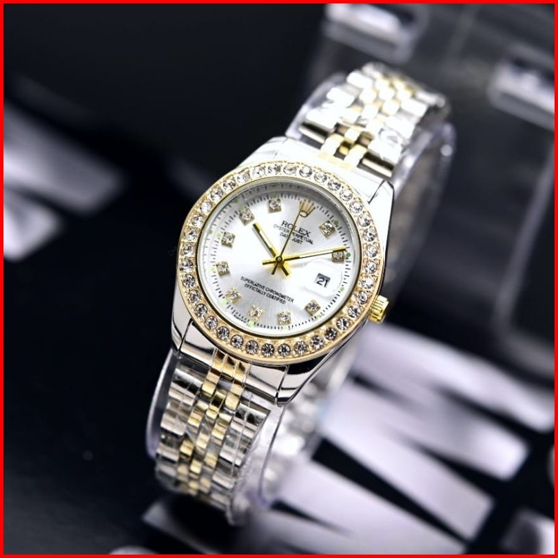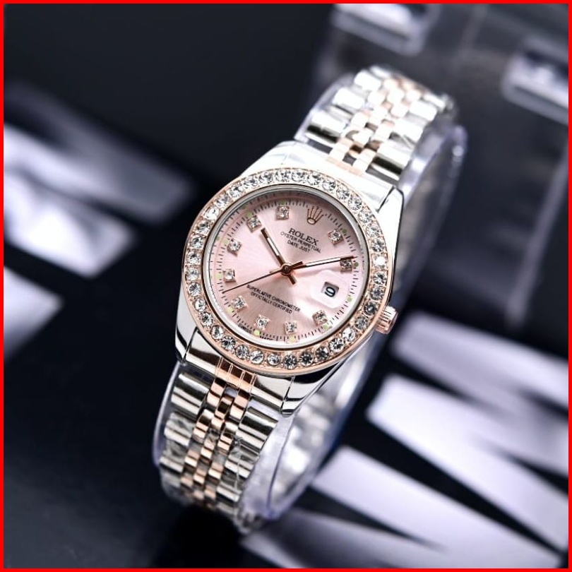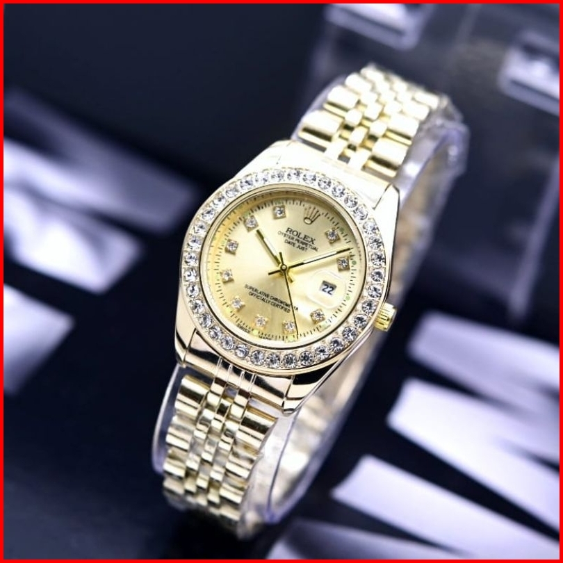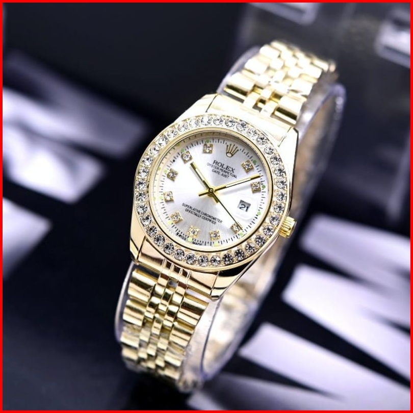 Jam Tangan Wanita Rolex Diamond Rantai Stainless Tanggal Aktif Free Box Dm 3.3cm Analog Quartz