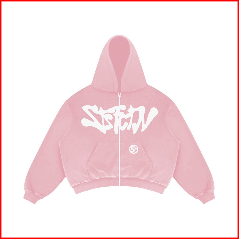 Satisfaction Hoodie Zipper Boxy 330gsm Starsy Puff Pink