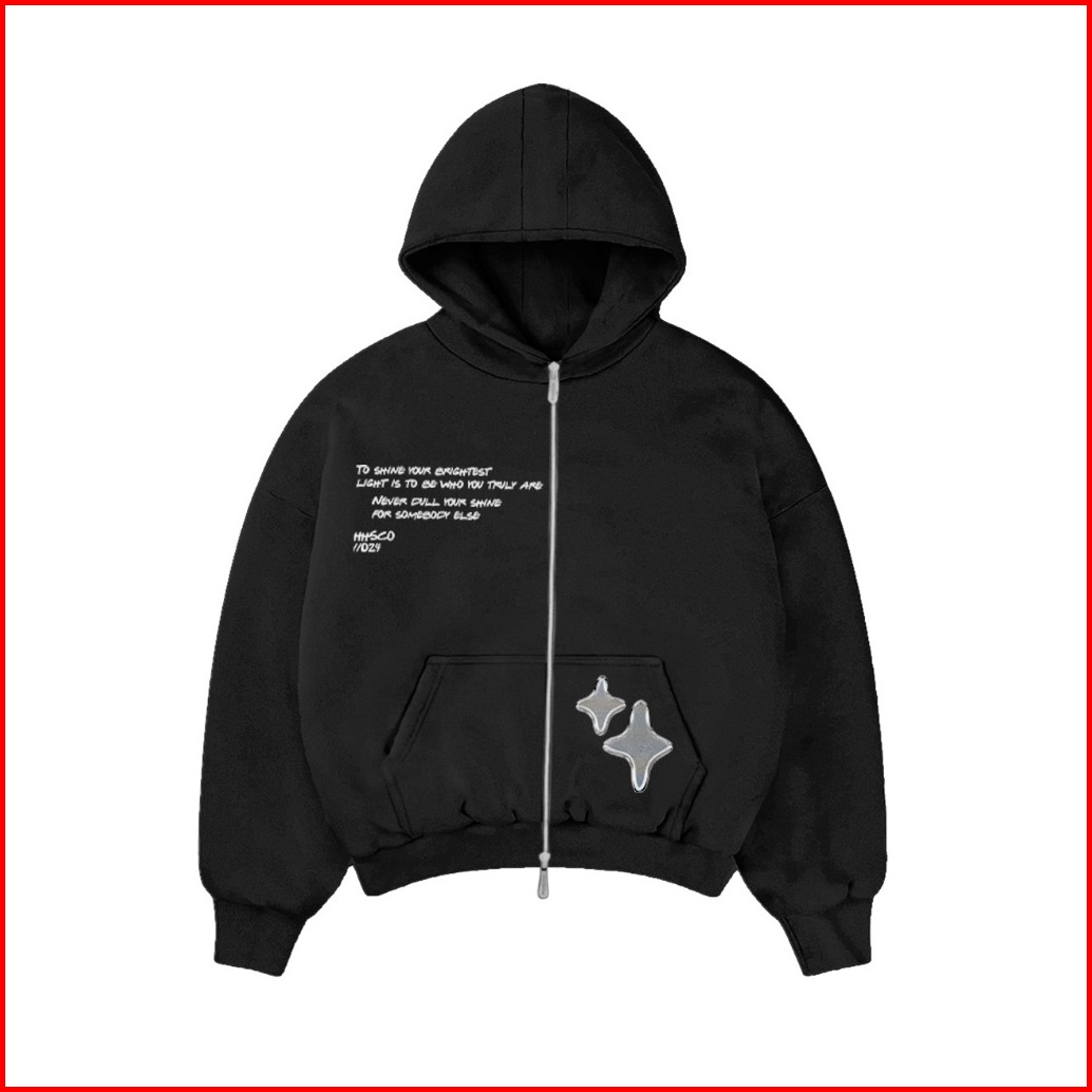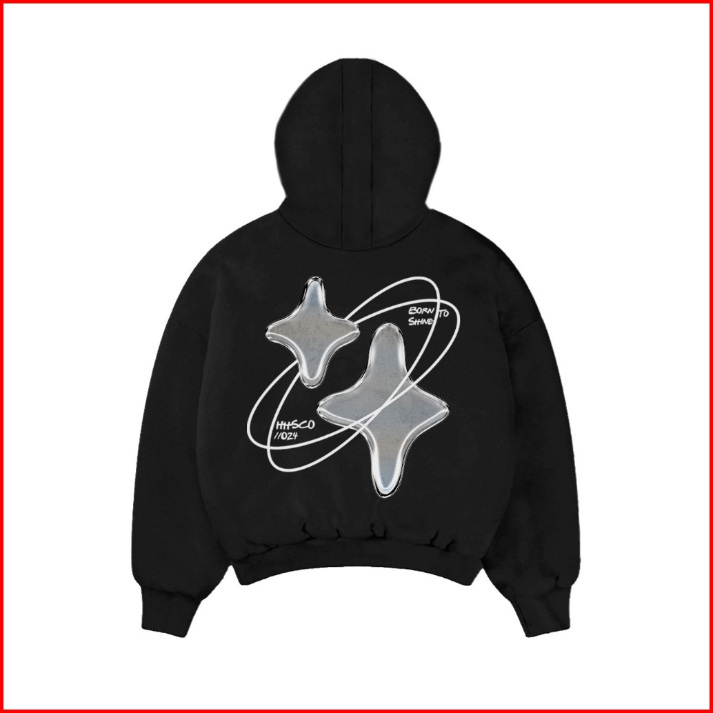 Hhsco - Hoodie Pria Zipper Boxy Born To Shine Hitam Original
