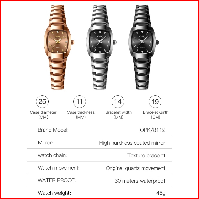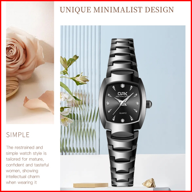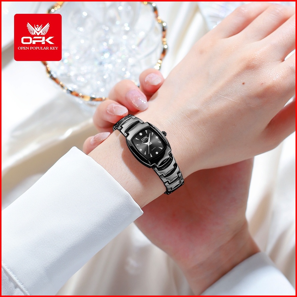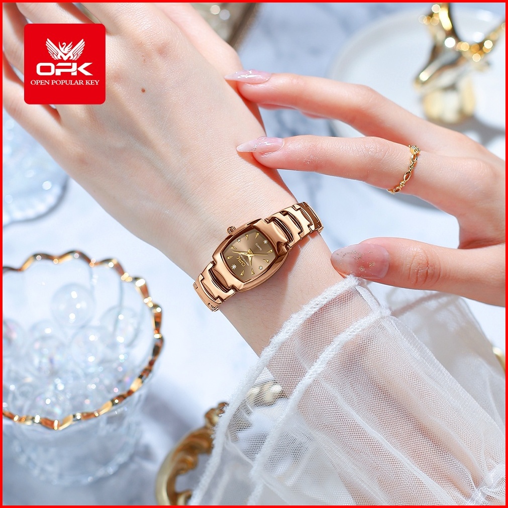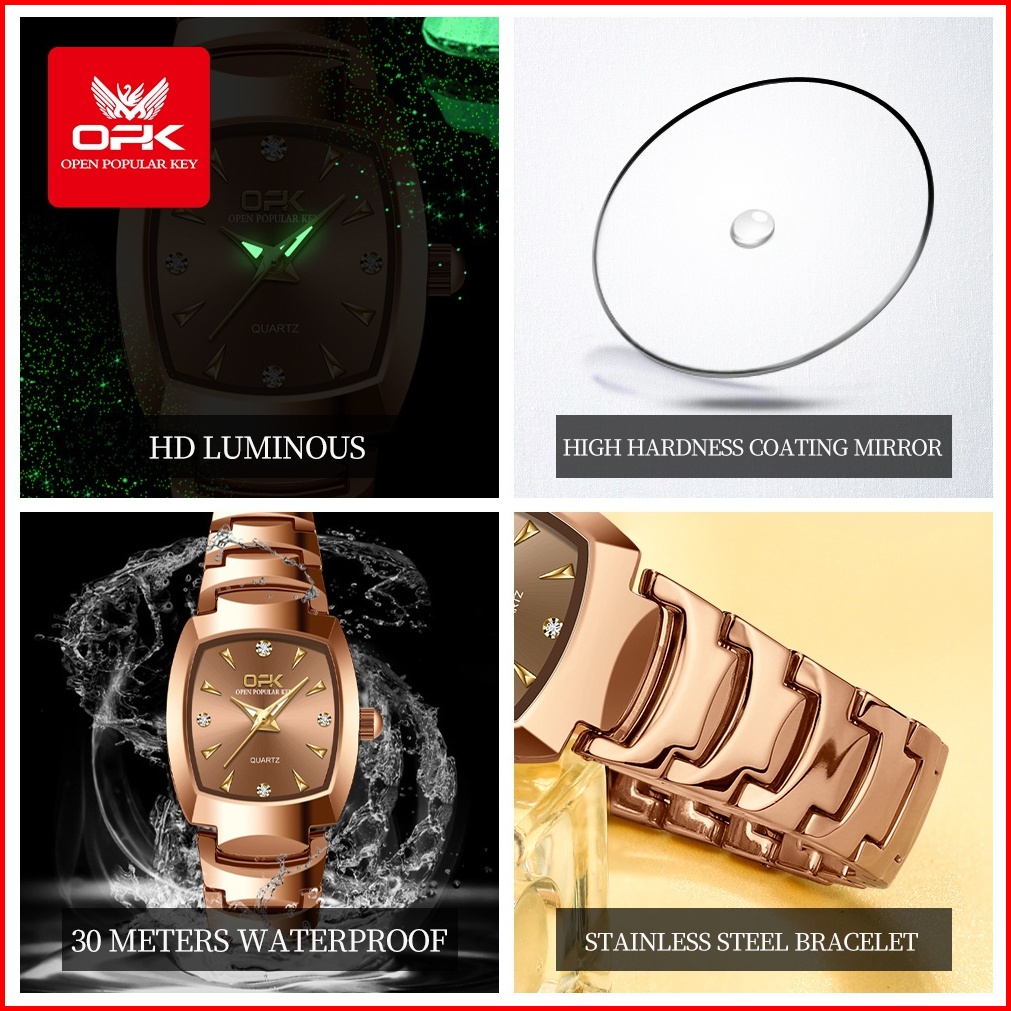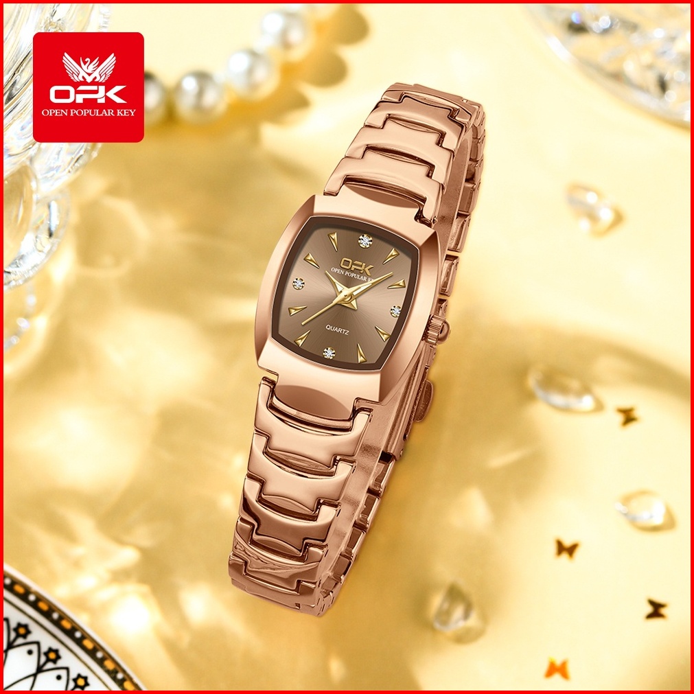 Opk Jam Tangan Wanita Anti Air Original Rantai Stainless Steel Anti Karat Luxury Square Watch Women 8112
