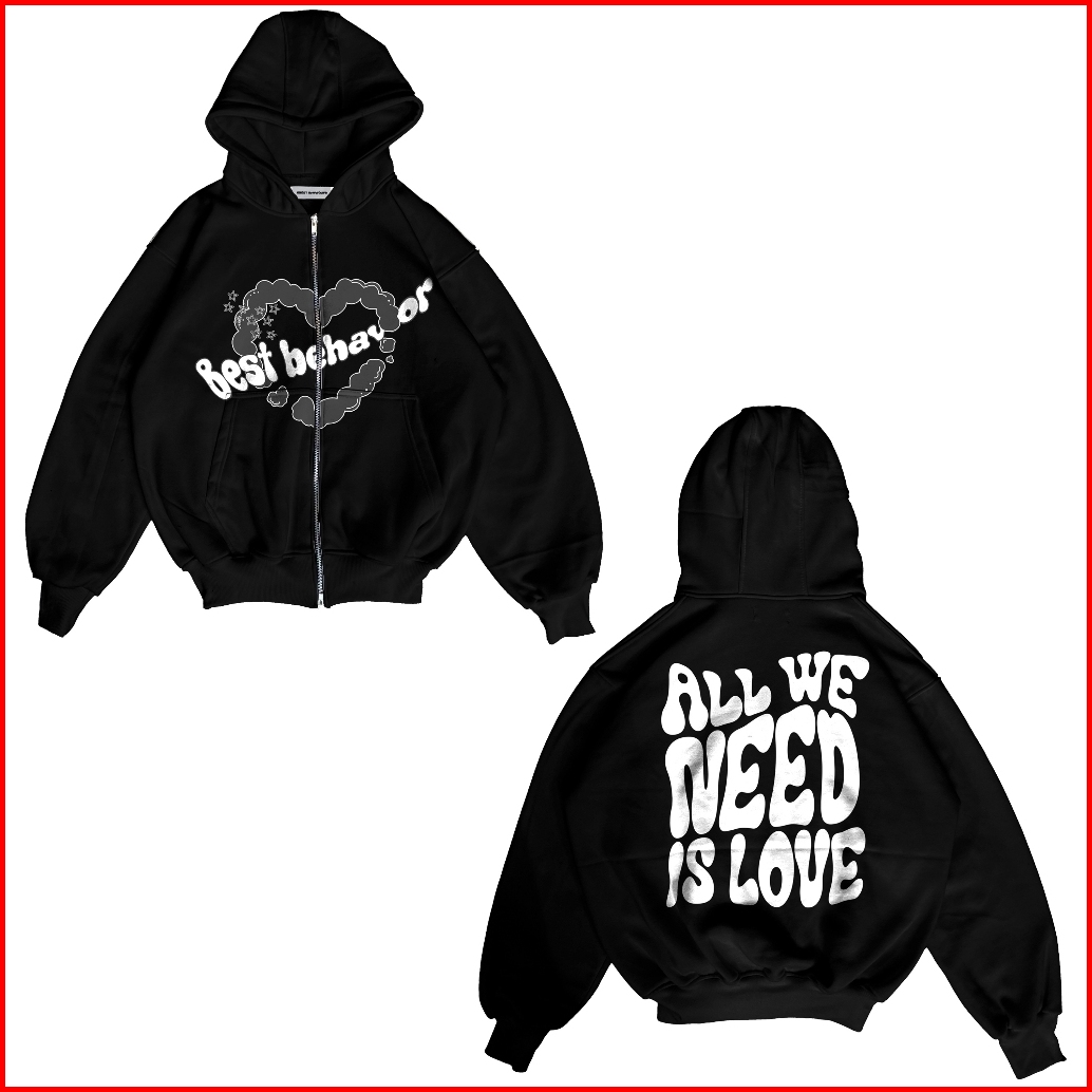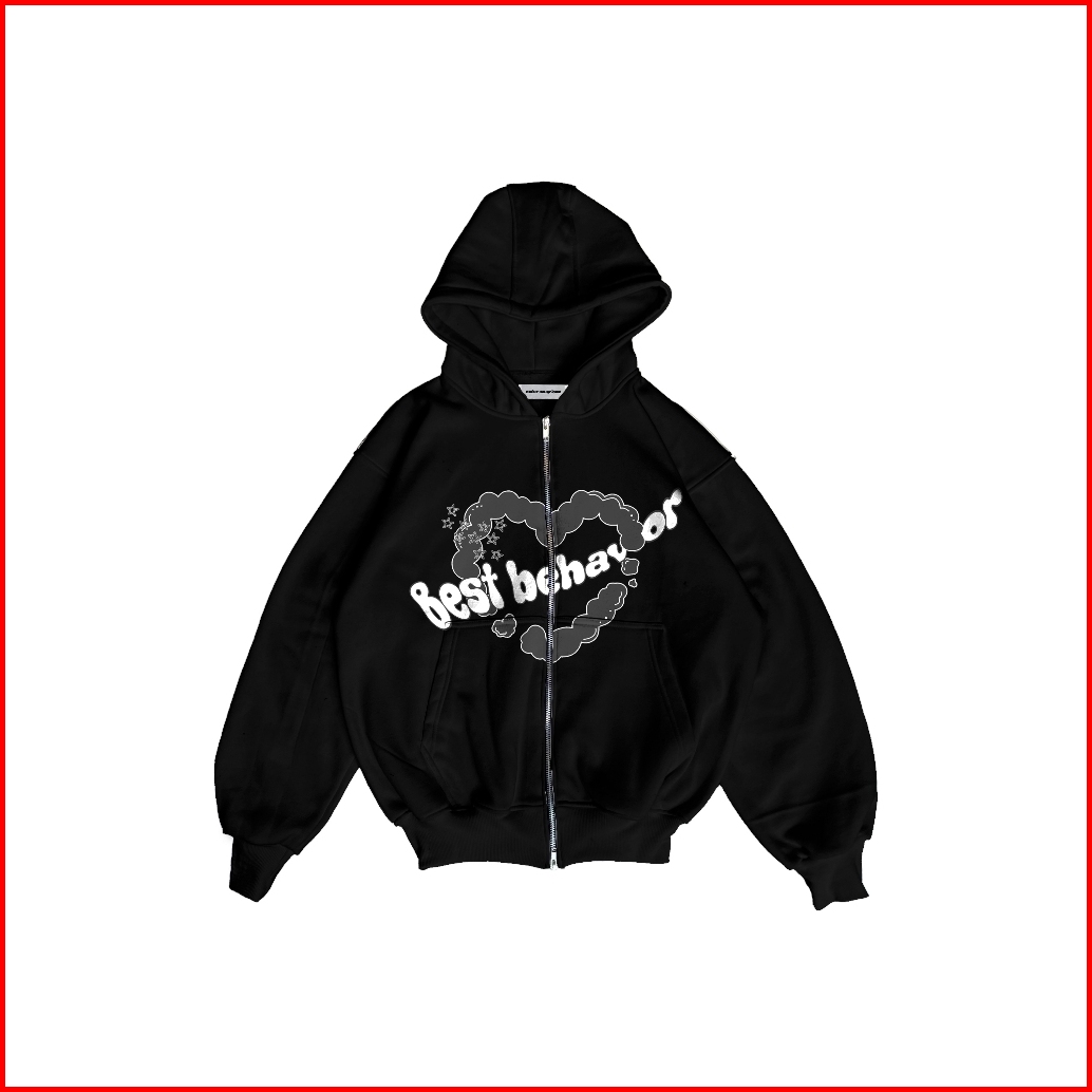 Boxy Hoodie Double Zipper Bestbehavior - Black Love